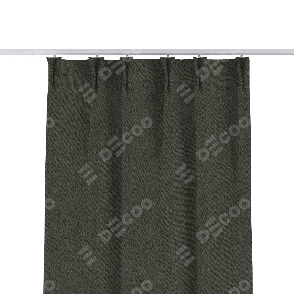 Комплект прямых штор, от производителя «Cortin», пошиты из ткани твид блэкаут тёмно-серый, артикул ткани 21587. С изнаночной стороны в верхней части штор пристрачивается шторная лента с декоративными складками «Кустик». Для создания элегантных складок прямые шторы шьются по стандарту с коэффициентом 1:2 (на 100 см. ширины проёма 200 см. ширины ткани).