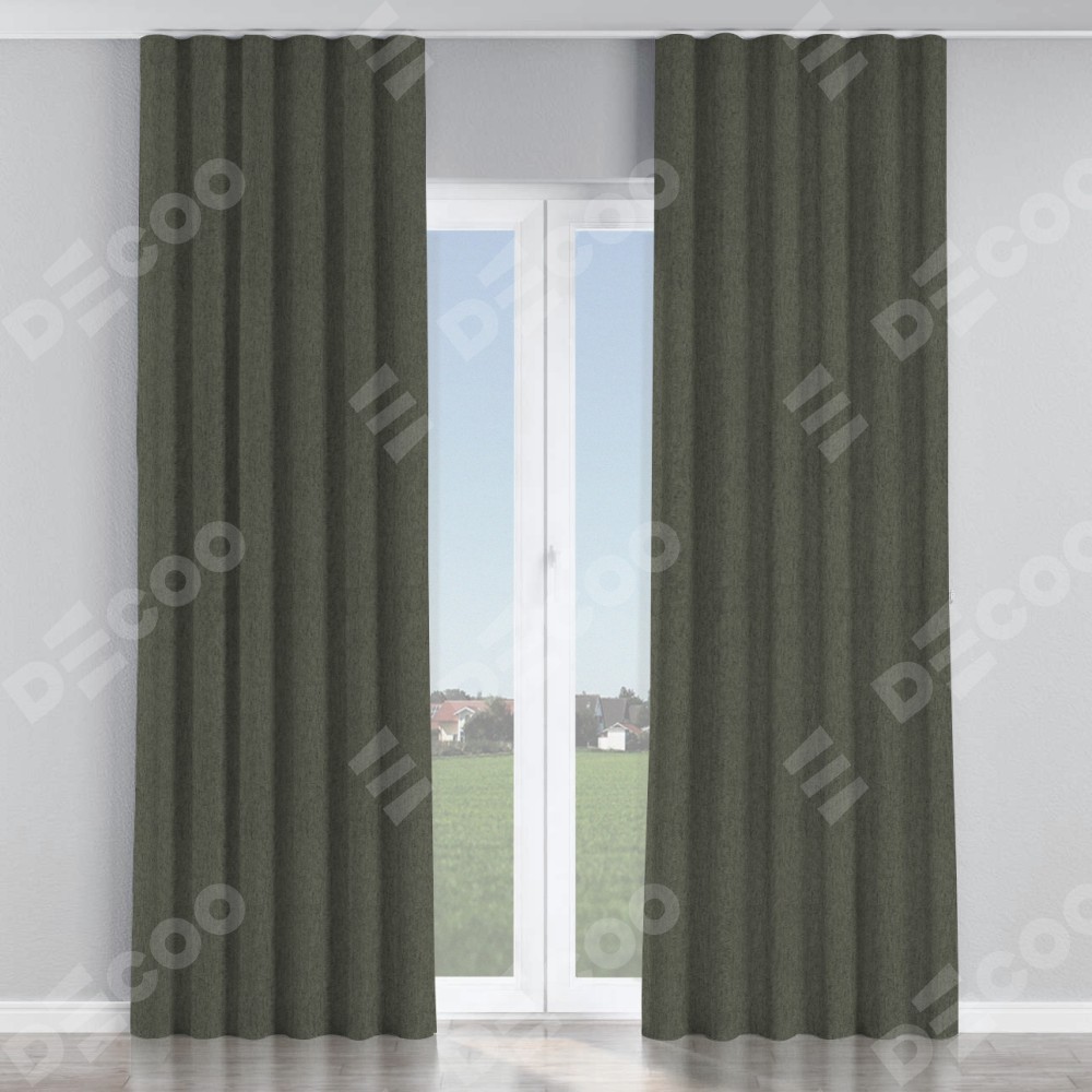 Комплект прямых штор, от производителя «Cortin», пошиты из ткани твид блэкаут тёмно-серый, артикул ткани 21587. С изнаночной стороны в верхней части штор пристрачивается шторная лента с декоративными складками «Волна». Для создания элегантных складок прямые шторы шьются по стандарту с коэффициентом 1:2 (на 100 см. ширины проёма 200 см. ширины ткани).
