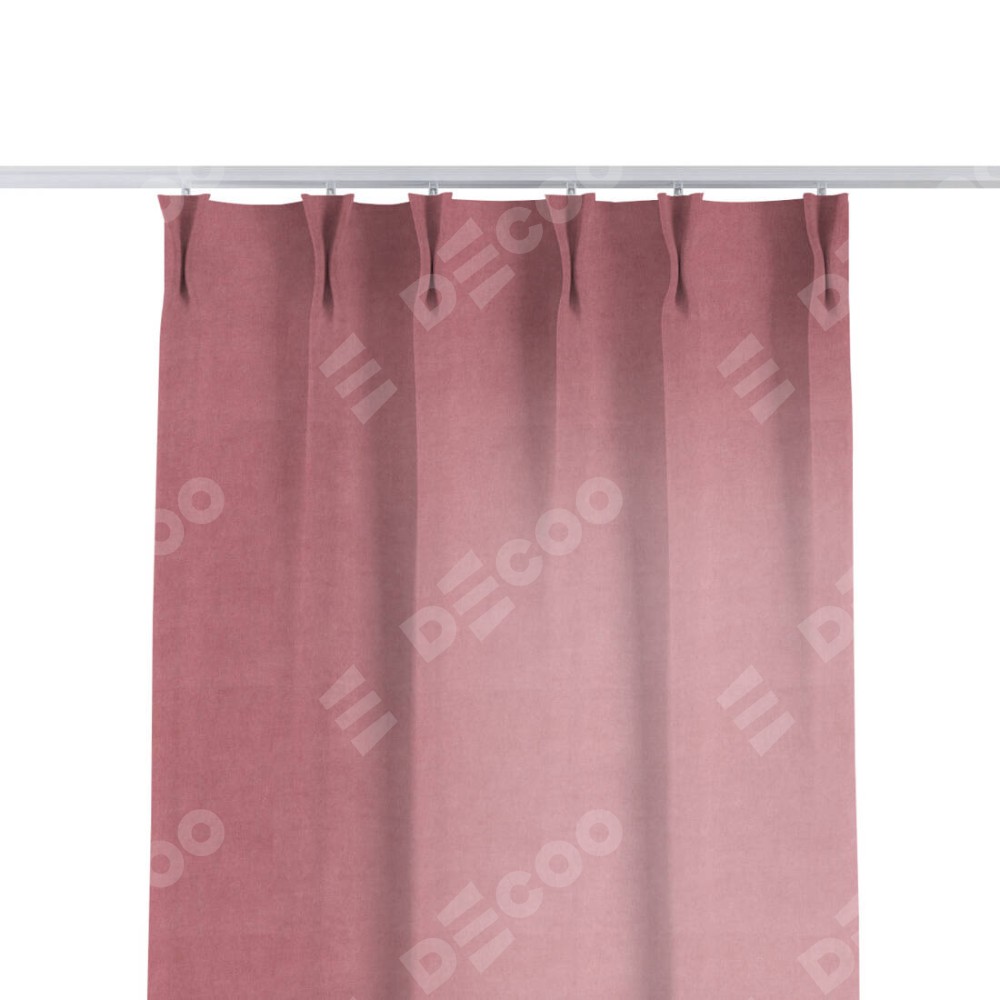 Комплект прямых штор, от производителя «Cortin», пошиты из ткани вельвет брусника, артикул ткани 85550. С изнаночной стороны в верхней части штор пристрачивается шторная лента с декоративными складками «Кустик». Для создания элегантных складок прямые шторы шьются по стандарту с коэффициентом 1:2 (на 100 см. ширины проёма 200 см. ширины ткани).