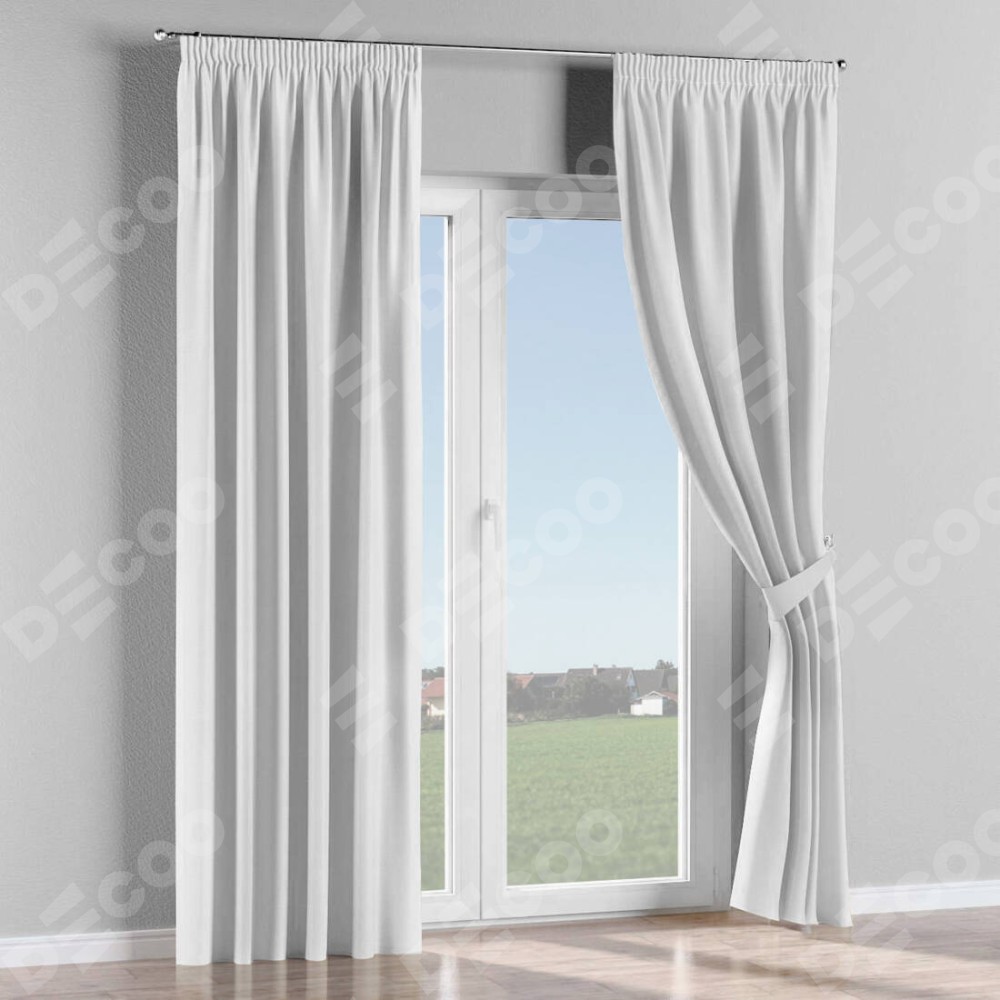 Комплект прямых штор, от производителя «Cortin», пошиты из ткани вельвет дымчато-белый, артикул ткани 85535. С изнаночной стороны в верхней части штор пристрачивается шторная лента с декоративными складками «Карандаш». Для создания элегантных складок прямые шторы шьются по стандарту с коэффициентом 1:2 (на 100 см. ширины проёма 200 см. ширины ткани).