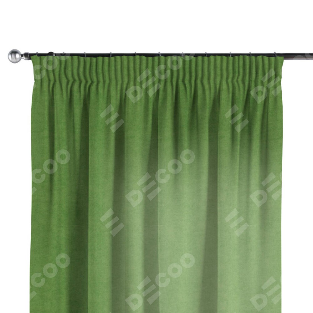 Комплект прямых штор, от производителя «Cortin», пошиты из ткани вельвет салатовый, артикул ткани 87072. С изнаночной стороны в верхней части штор пристрачивается шторная лента с декоративными складками «Карандаш». Для создания элегантных складок прямые шторы шьются по стандарту с коэффициентом 1:2 (на 100 см. ширины проёма 200 см. ширины ткани).