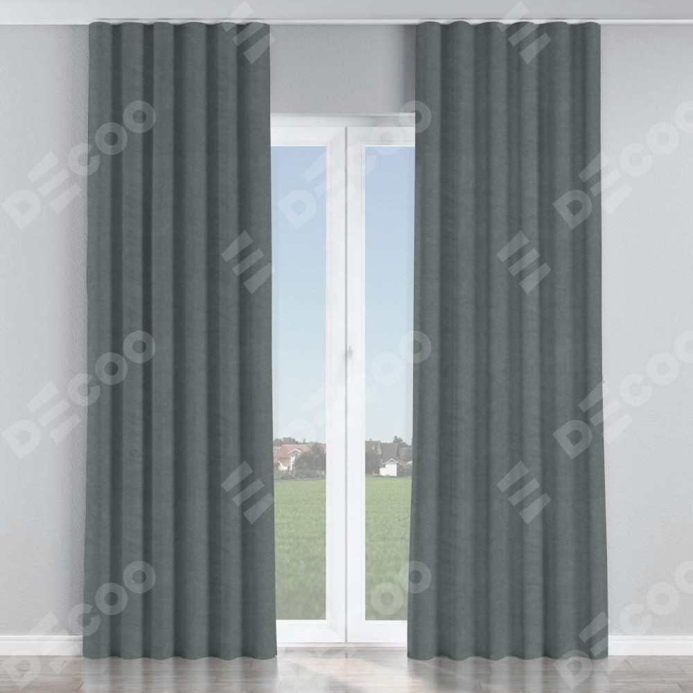 Комплект прямых штор, от производителя «Cortin», пошиты из ткани вельвет серый, артикул ткани 85542. С изнаночной стороны в верхней части штор пристрачивается шторная лента с декоративными складками «Волна». Для создания элегантных складок прямые шторы шьются по стандарту с коэффициентом 1:2 (на 100 см. ширины проёма 200 см. ширины ткани).
