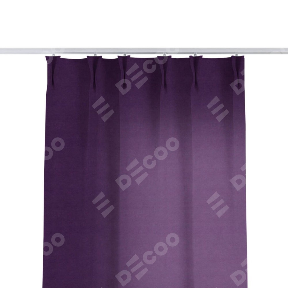 Комплект прямых штор, от производителя «Cortin», пошиты из ткани вельвет тёмно-фиолетовый, артикул ткани 17753. С изнаночной стороны в верхней части штор пристрачивается шторная лента с декоративными складками «Кустик». Для создания элегантных складок прямые шторы шьются по стандарту с коэффициентом 1:2 (на 100 см. ширины проёма 200 см. ширины ткани).