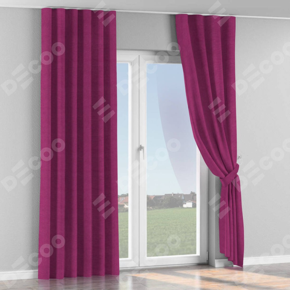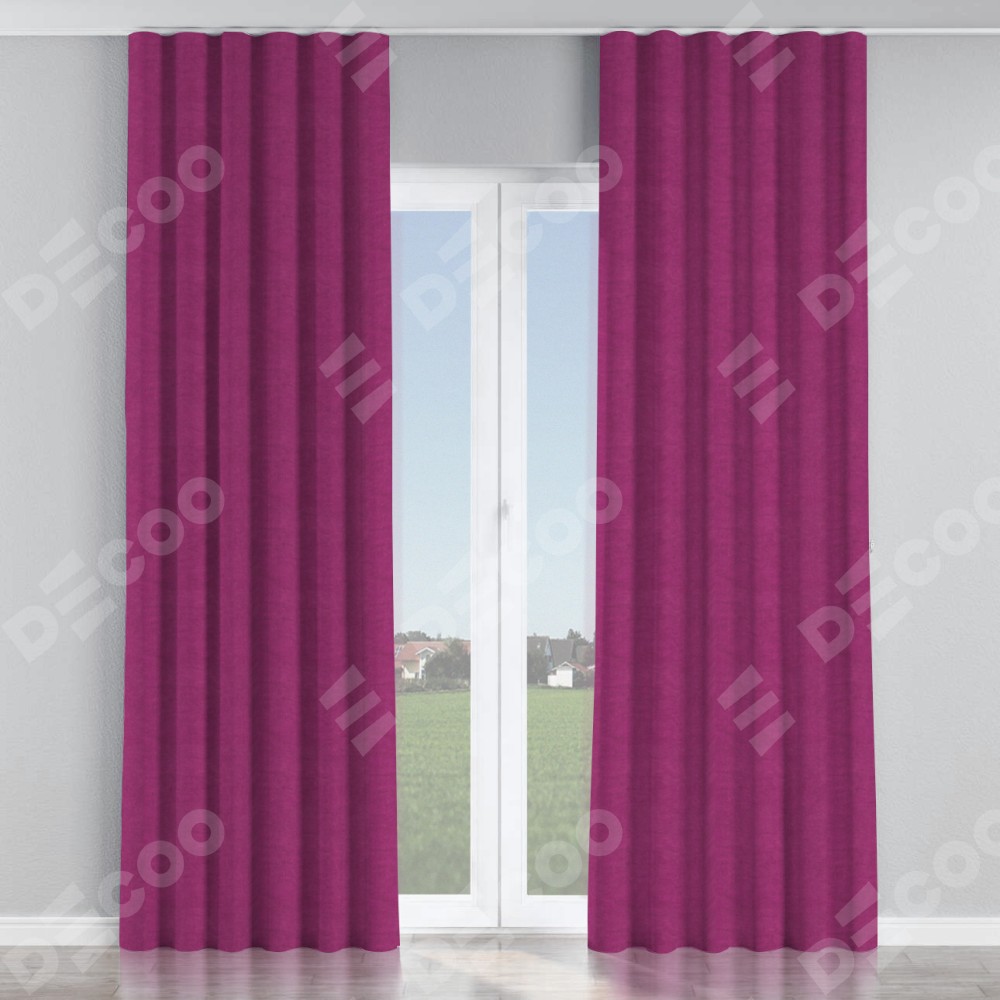 Комплект прямых штор, от производителя «Cortin», пошиты из ткани вельвет фиолетовый, артикул ткани 85552. С изнаночной стороны в верхней части штор пристрачивается шторная лента с декоративными складками «Волна». Для создания элегантных складок прямые шторы шьются по стандарту с коэффициентом 1:2 (на 100 см. ширины проёма 200 см. ширины ткани).