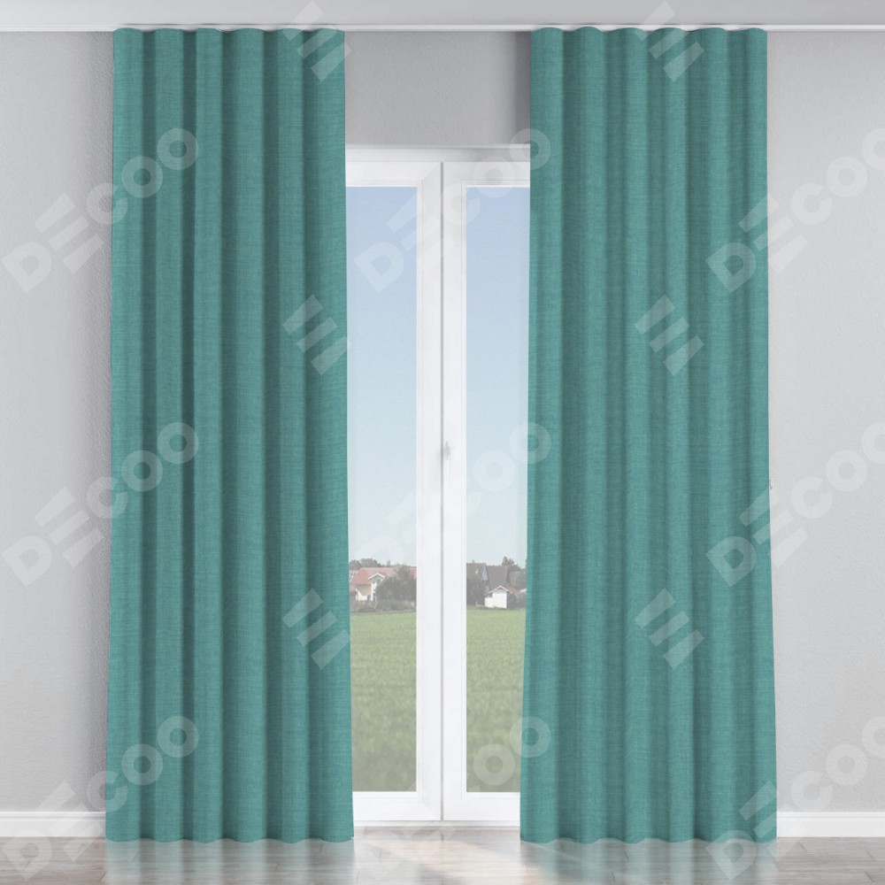 Комплект прямых штор, от производителя «Cortin», пошиты из ткани лён бирюза, артикул ткани 7446. С изнаночной стороны в верхней части штор пристрачивается шторная лента с декоративными складками «Волна». Для создания элегантных складок прямые шторы шьются по стандарту с коэффициентом 1:2 (на 100 см. ширины проёма 200 см. ширины ткани).