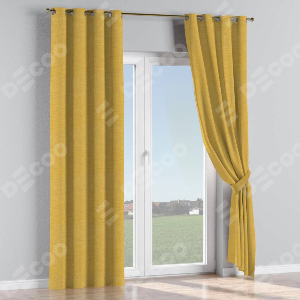 Комплект штор на люверсах лён горчичный