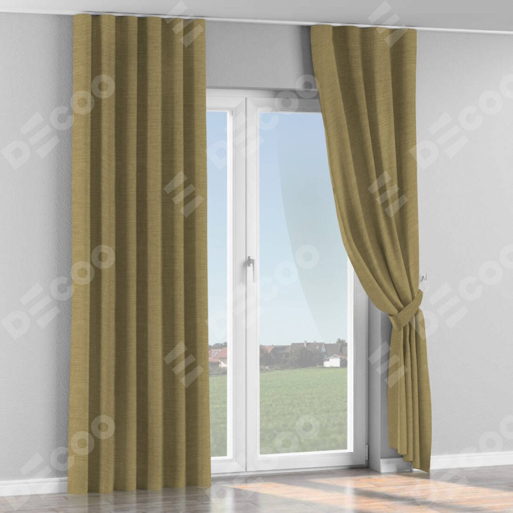 Комплект прямых штор, от производителя «Cortin», пошиты из ткани лён коричневый, артикул ткани 7443. С изнаночной стороны в верхней части штор пристрачивается шторная лента с декоративными складками «Волна». Для создания элегантных складок прямые шторы шьются по стандарту с коэффициентом 1:2 (на 100 см. ширины проёма 200 см. ширины ткани).