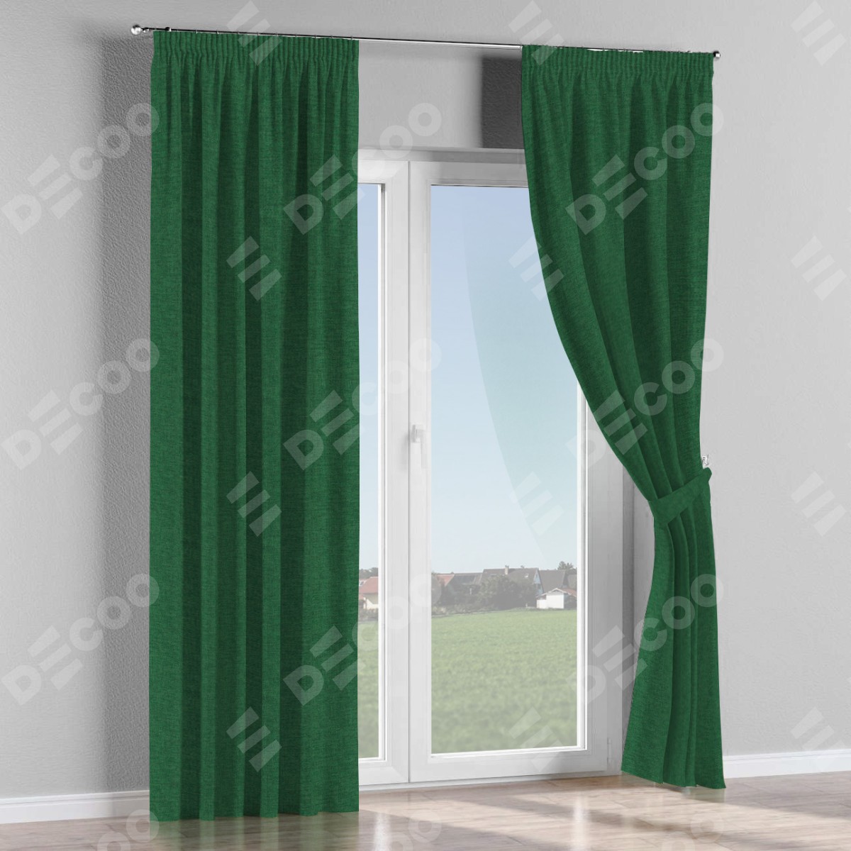 Комплект прямых штор, от производителя «Cortin», пошиты из ткани лён серо-зелёный, артикул ткани 63740. С изнаночной стороны в верхней части штор пристрачивается шторная лента с декоративными складками «Карандаш». Для создания элегантных складок прямые шторы шьются по стандарту с коэффициентом 1:2 (на 100 см. ширины проёма 200 см. ширины ткани).