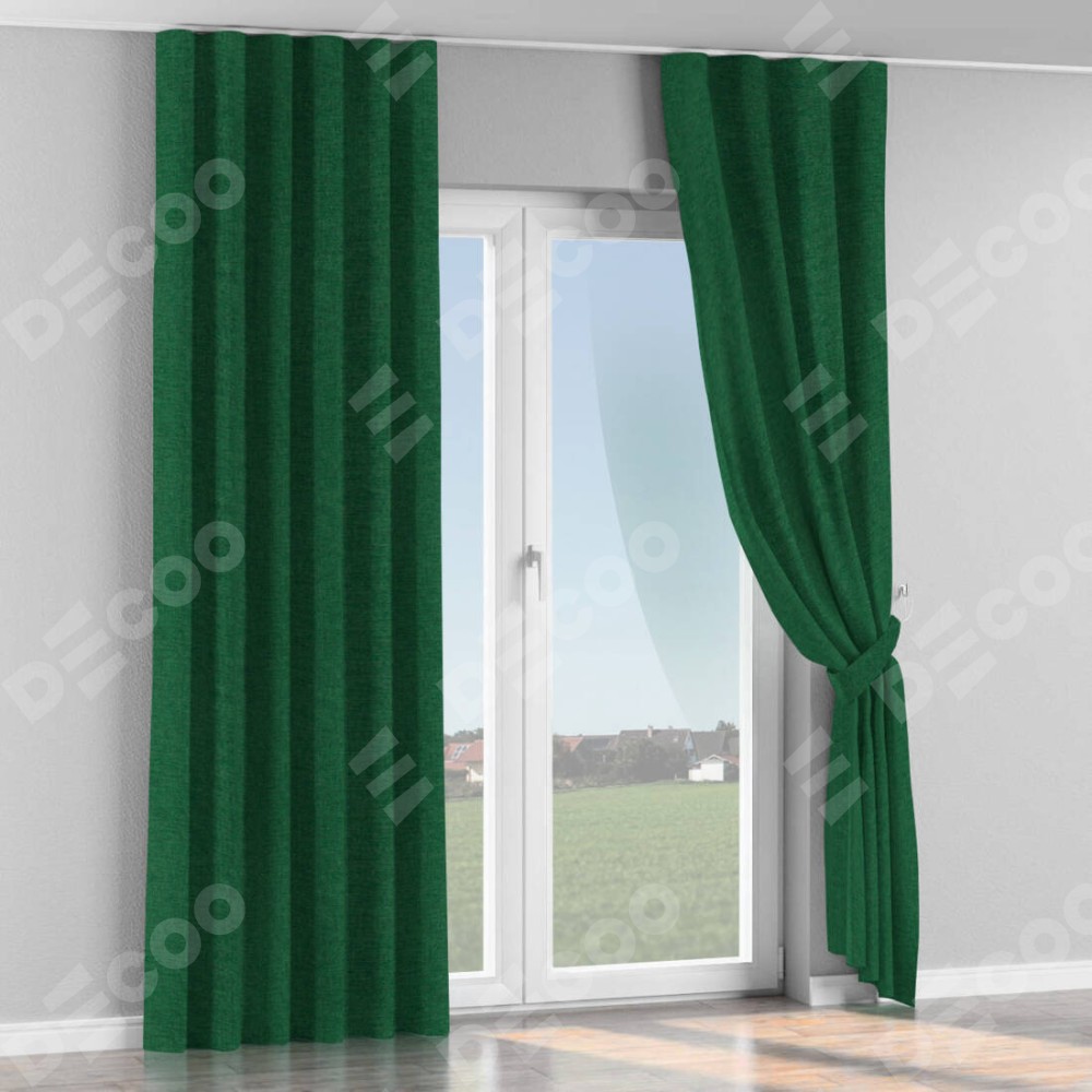 Комплект прямых штор, от производителя «Cortin», пошиты из ткани лён серо-зелёный, артикул ткани 63740. С изнаночной стороны в верхней части штор пристрачивается шторная лента с декоративными складками «Волна». Для создания элегантных складок прямые шторы шьются по стандарту с коэффициентом 1:2 (на 100 см. ширины проёма 200 см. ширины ткани).
