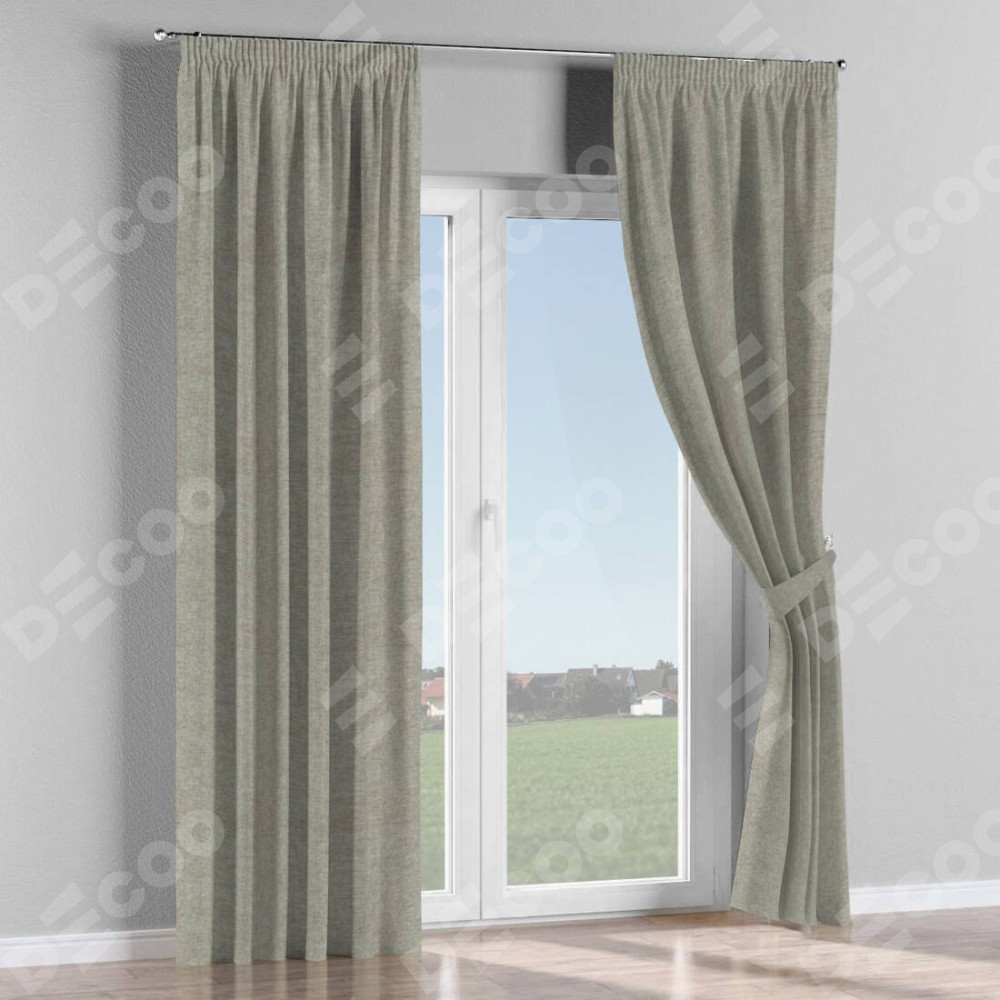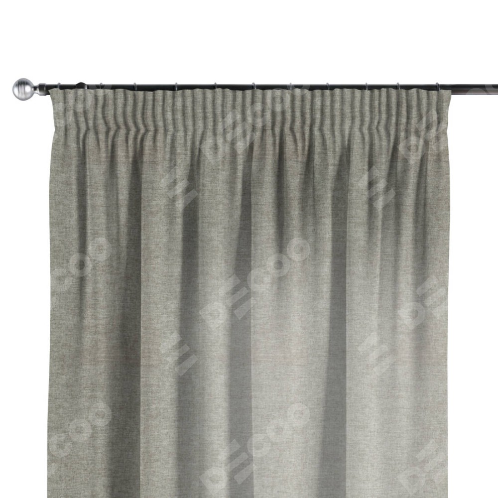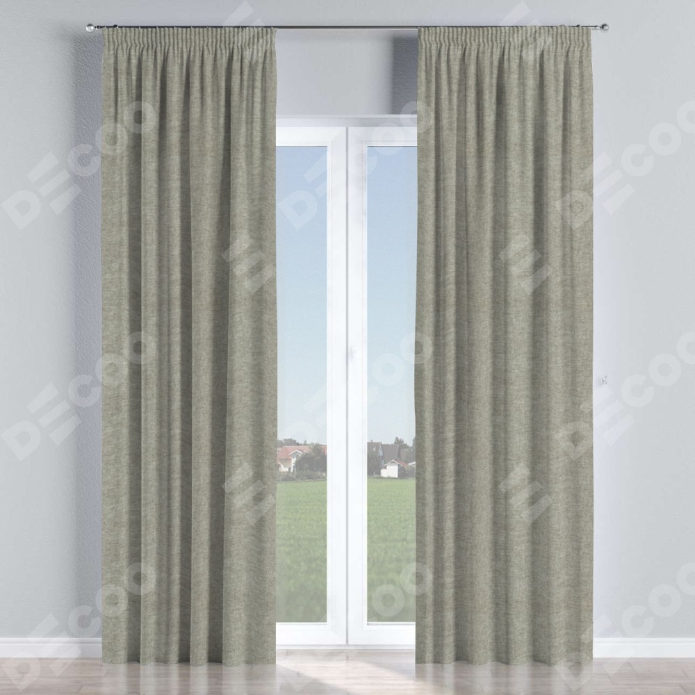Комплект прямых штор, от производителя «Cortin», пошиты из ткани лён кашемир серый, артикул ткани 17208. С изнаночной стороны в верхней части штор пристрачивается шторная лента с декоративными складками «Карандаш». Для создания элегантных складок прямые шторы шьются по стандарту с коэффициентом 1:2 (на 100 см. ширины проёма 200 см. ширины ткани).
