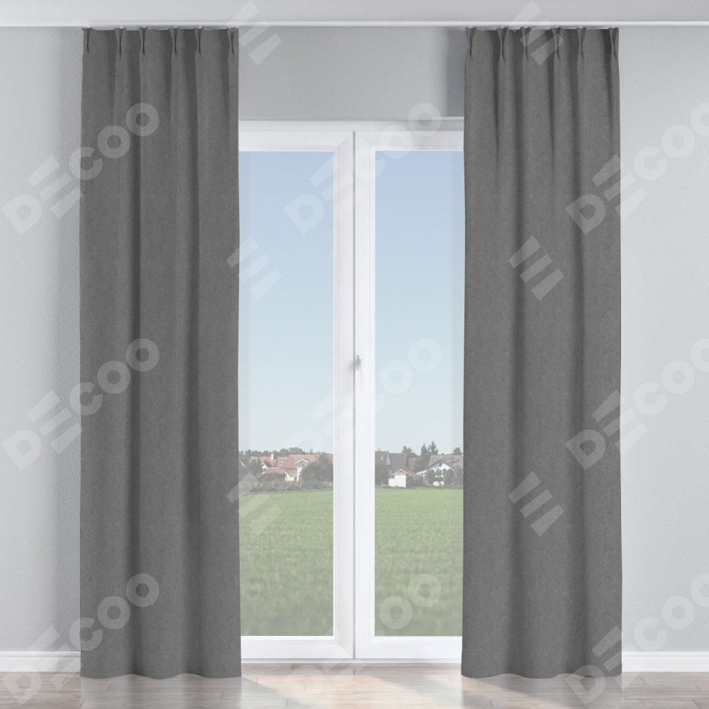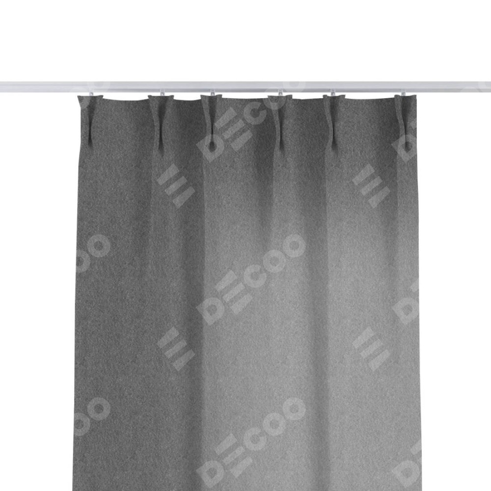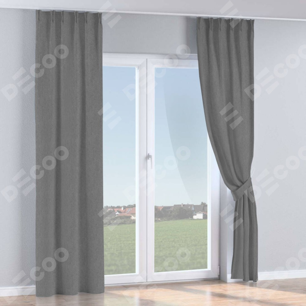 Комплект прямых штор, от производителя «Cortin», пошиты из ткани софт однотонный серый, артикул ткани 70605. С изнаночной стороны в верхней части штор пристрачивается шторная лента с декоративными складками «Кустик». Для создания элегантных складок прямые шторы шьются по стандарту с коэффициентом 1:2 (на 100 см. ширины проёма 200 см. ширины ткани).