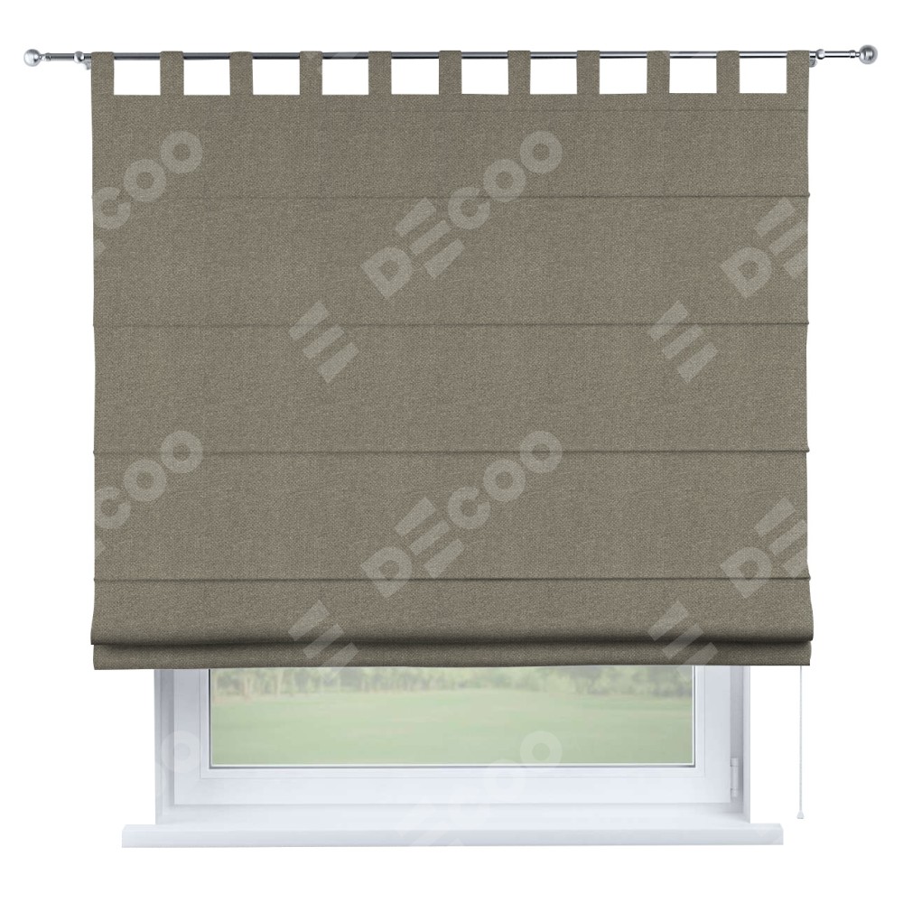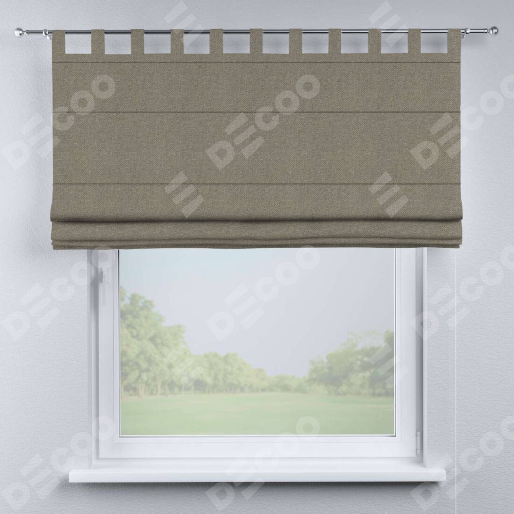 Римская штора производителя «Cortin», используется для проёма, пошита из ткани лён димаут серо-зелёный, артикул ткани 00003. Данная модель пошита на петлях, комплектуется на выбор круглым карнизом и подходит для монтажа на стену. Римская штора на петлях имеет простую систему регулировки высоты, отличительным преимуществом данной модели является простой способ монтажа. Достаточно повесить ее на трубу и штора готова!
