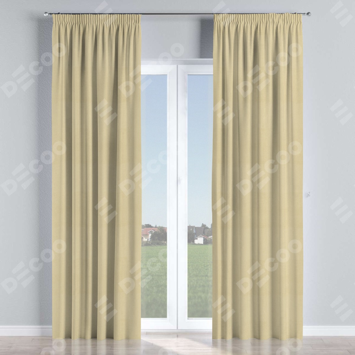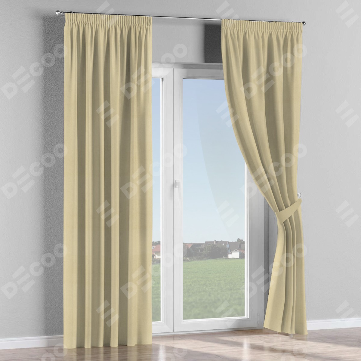 Комплект прямых штор, от производителя «Cortin», пошиты из ткани блэкаут однотонный милано латте, артикул ткани 05. С изнаночной стороны в верхней части штор пристрачивается шторная лента с декоративными складками «Карандаш». Для создания элегантных складок прямые шторы шьются по стандарту с коэффициентом 1:2 (на 100 см. ширины проёма 200 см. ширины ткани).