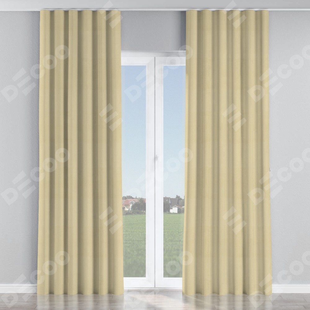 Комплект прямых штор, от производителя «Cortin», пошиты из ткани блэкаут однотонный милано латте, артикул ткани 05. С изнаночной стороны в верхней части штор пристрачивается шторная лента с декоративными складками «Волна». Для создания элегантных складок прямые шторы шьются по стандарту с коэффициентом 1:2 (на 100 см. ширины проёма 200 см. ширины ткани).