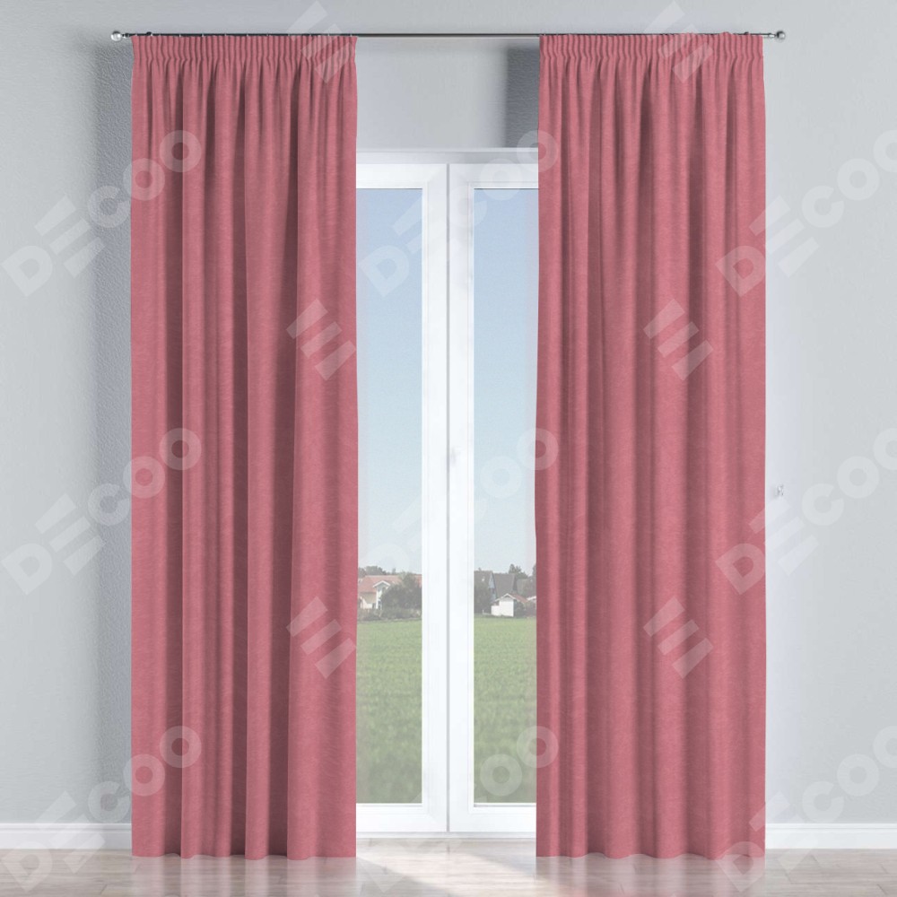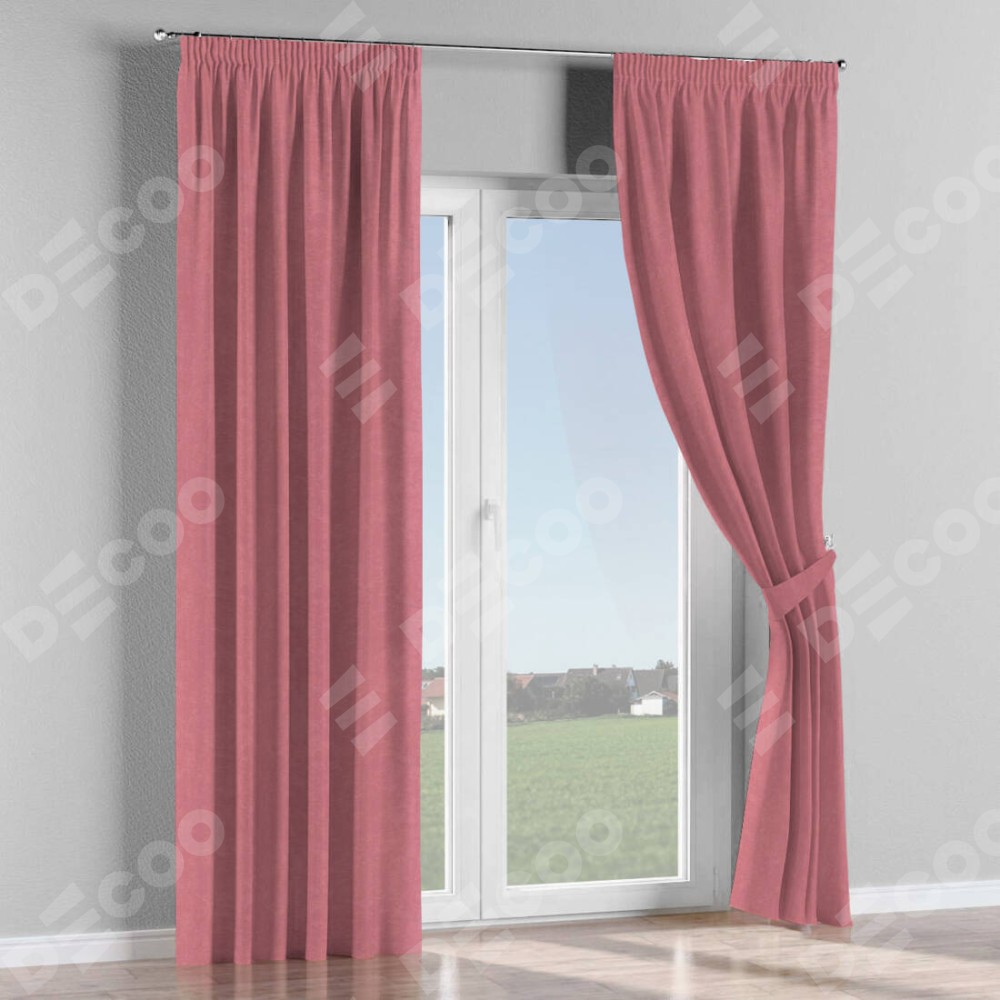 Комплект прямых штор, от производителя «Cortin», пошиты из ткани софт однотонный розовый, артикул ткани 42926. С изнаночной стороны в верхней части штор пристрачивается шторная лента с декоративными складками «Карандаш». Для создания элегантных складок прямые шторы шьются по стандарту с коэффициентом 1:2 (на 100 см. ширины проёма 200 см. ширины ткани).