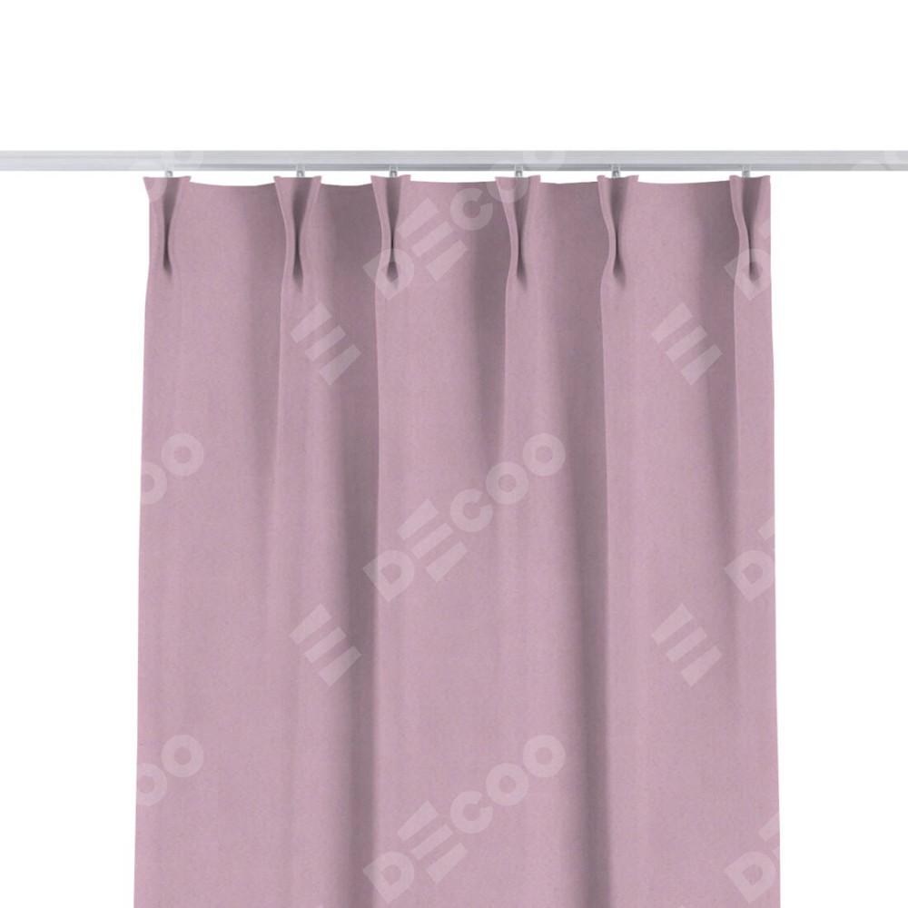 Комплект прямых штор, от производителя «Cortin», пошиты из ткани pipa блэкаут розовый, артикул ткани 12091. С изнаночной стороны в верхней части штор пристрачивается шторная лента с декоративными складками «Кустик». Для создания элегантных складок прямые шторы шьются по стандарту с коэффициентом 1:2 (на 100 см. ширины проёма 200 см. ширины ткани).