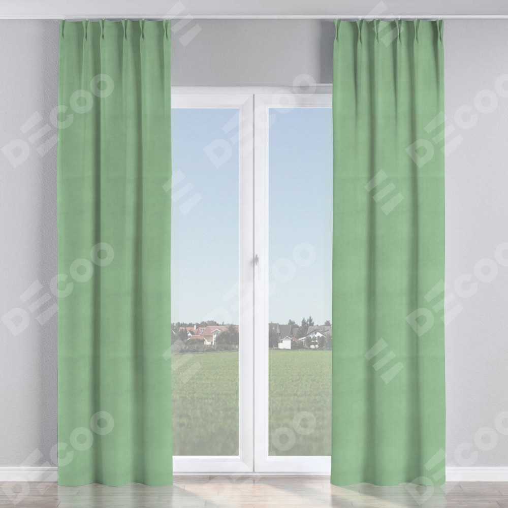 Комплект прямых штор, от производителя «Cortin», пошиты из ткани бархат оливковый, артикул ткани 18746. С изнаночной стороны в верхней части штор пристрачивается шторная лента с декоративными складками «Кустик». Для создания элегантных складок прямые шторы шьются по стандарту с коэффициентом 1:2 (на 100 см. ширины проёма 200 см. ширины ткани).