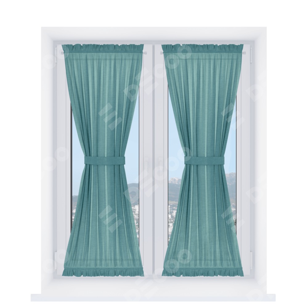Штора «Песочные часы» производителя «Cortin», используется для створок окон и дверей, пошита из ткани лён бирюза, артикул ткани 7446.