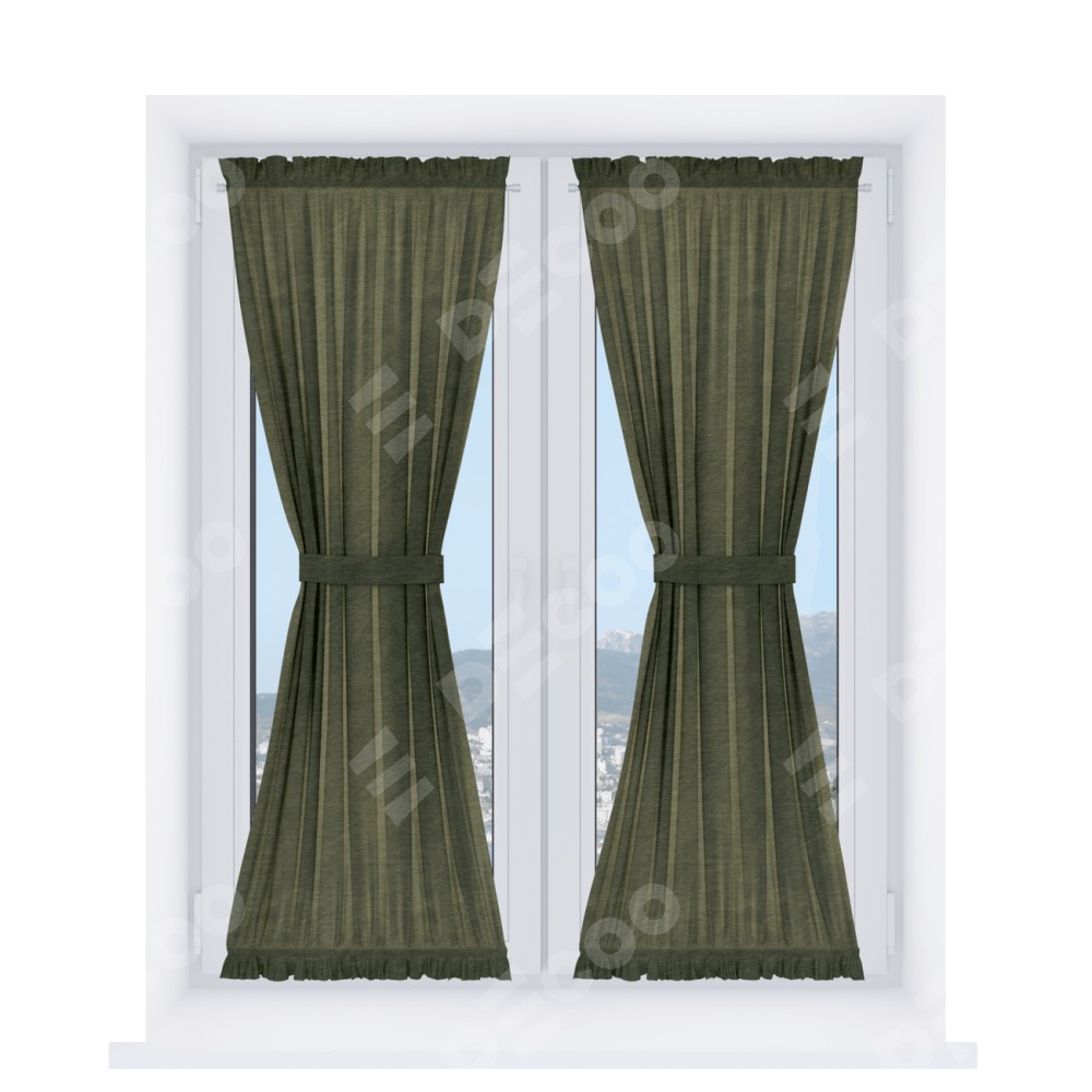 Штора «Песочные часы» производителя «Cortin», используется для створок окон и дверей, пошита из ткани софт однотонный зелёный, артикул ткани 33110.