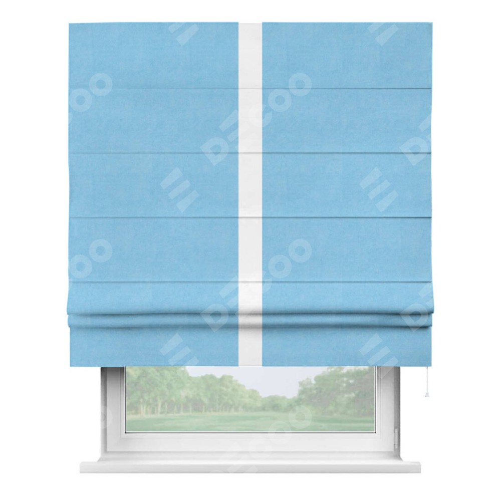 Римская штора «Кортин» с кантом Хайвэй, для проема, ткань вельвет голубой