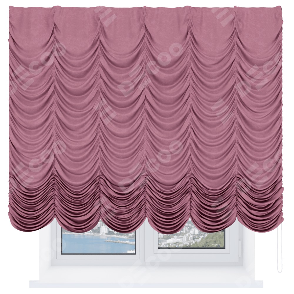 Французская штора производителя «Cortin», используется для проёма, пошита из ткани софт однотонный розовый, артикул ткани 42926. Имеет универсальный механизм и подходит для монтажа: на потолок и на стену.