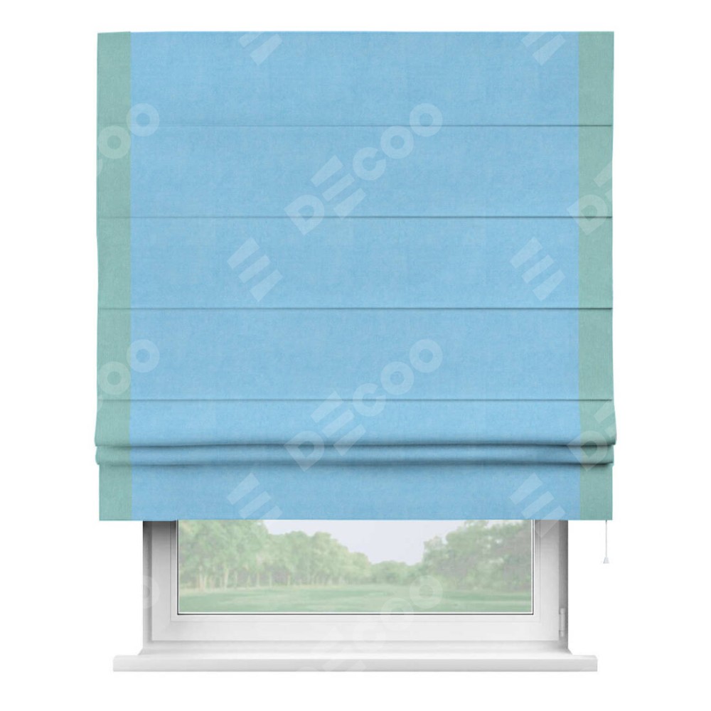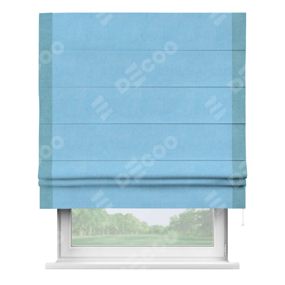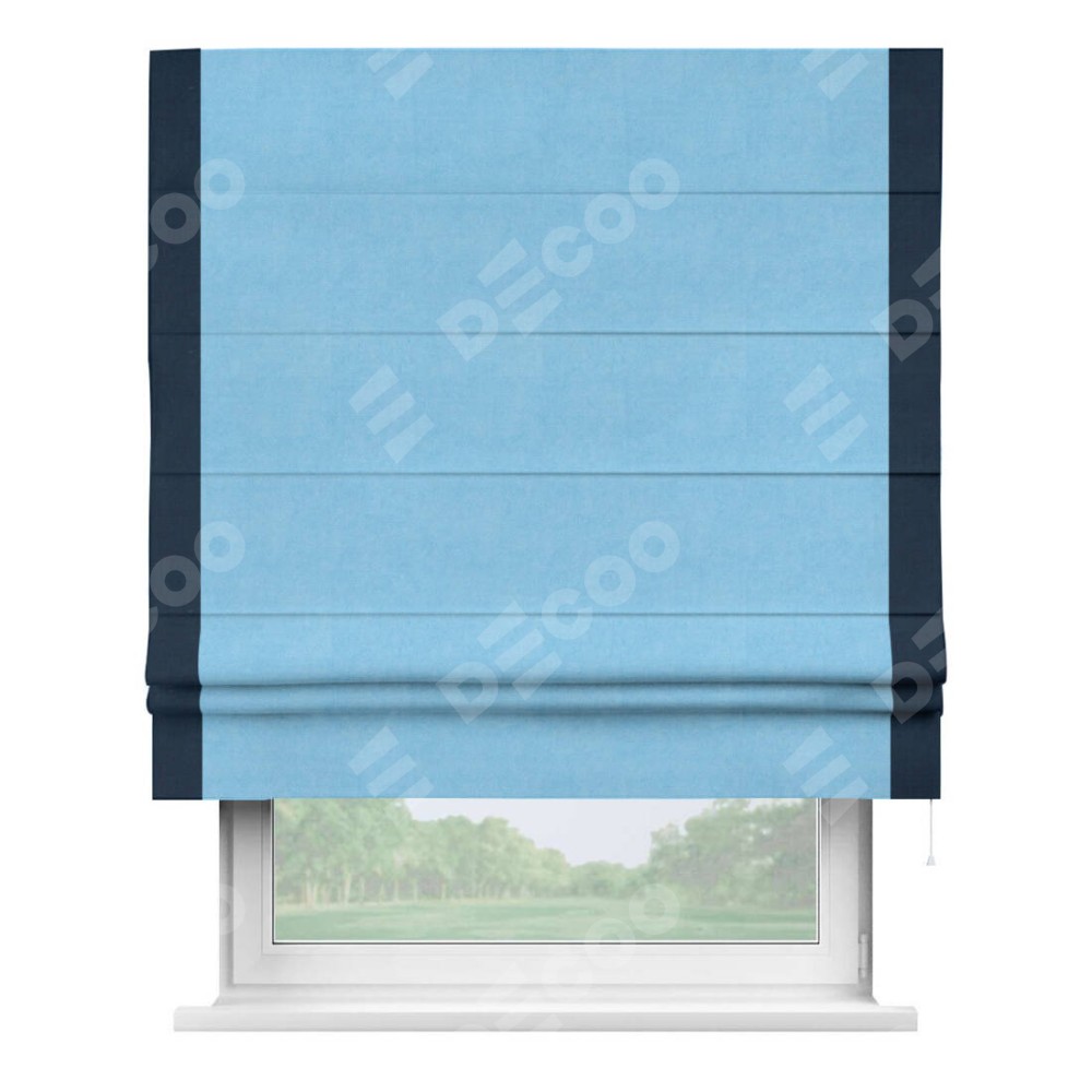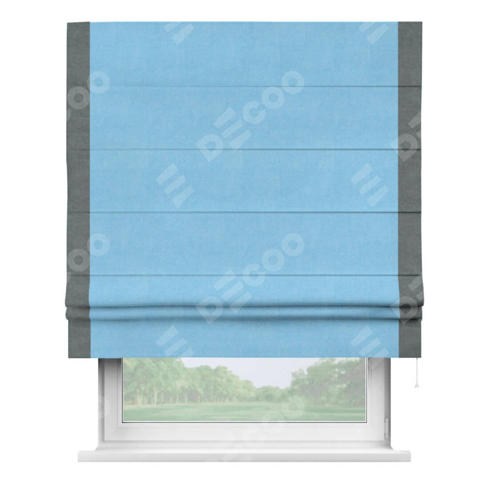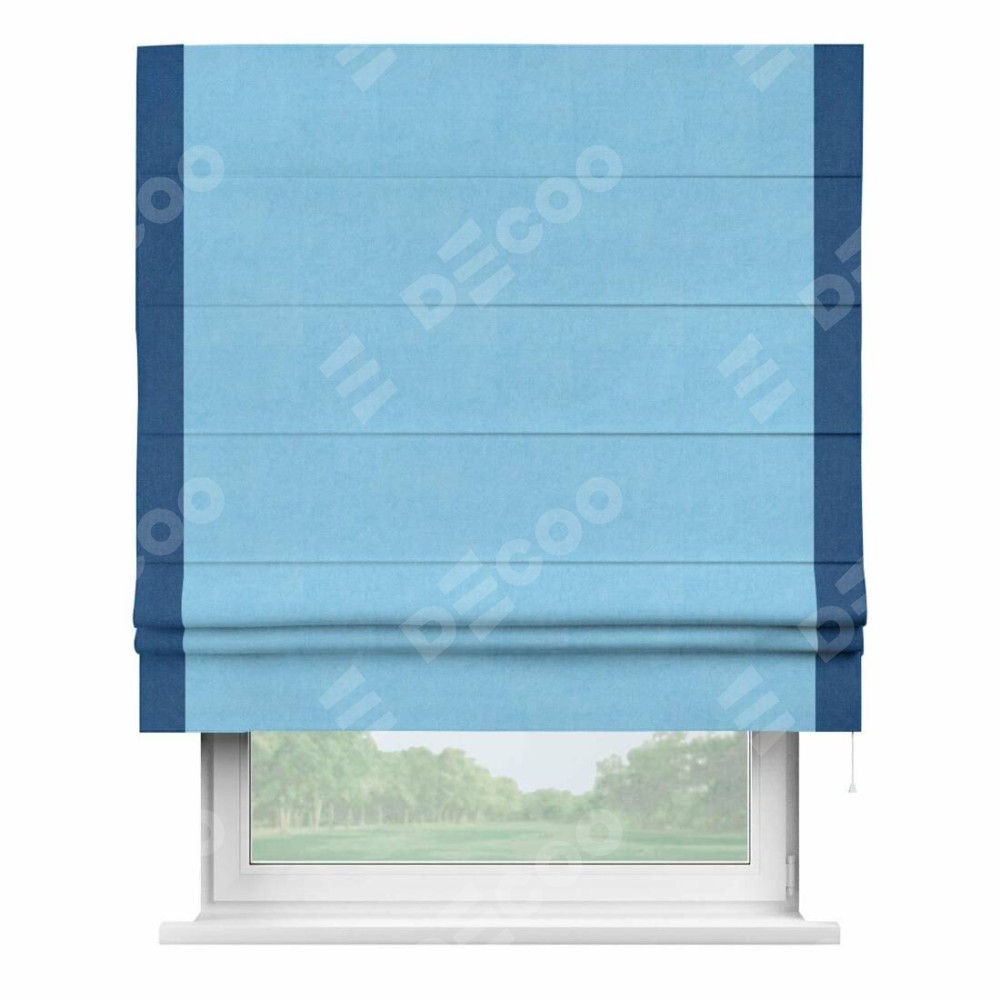 Римская штора «Кортин» с кантом Стрим Дуо, для проема, ткань вельвет голубой