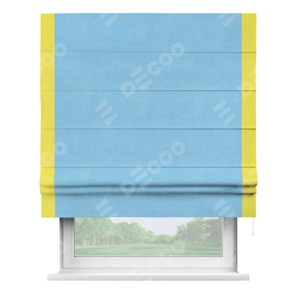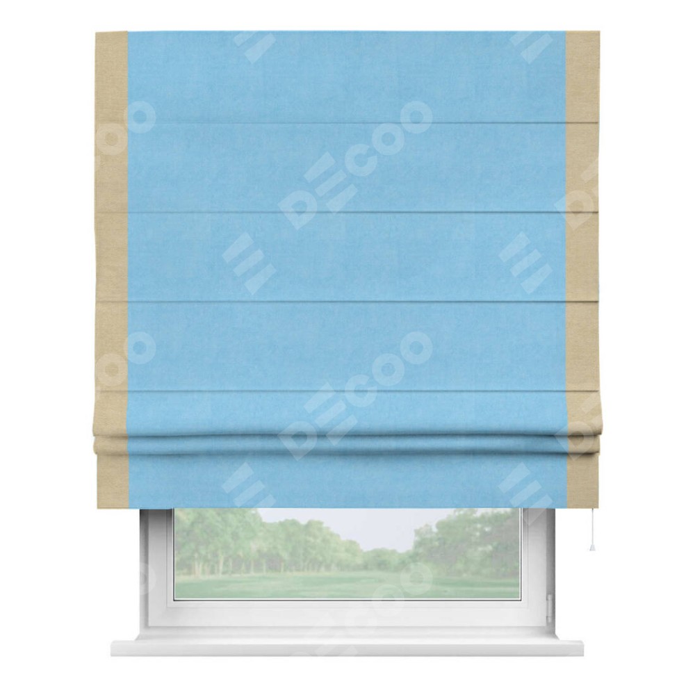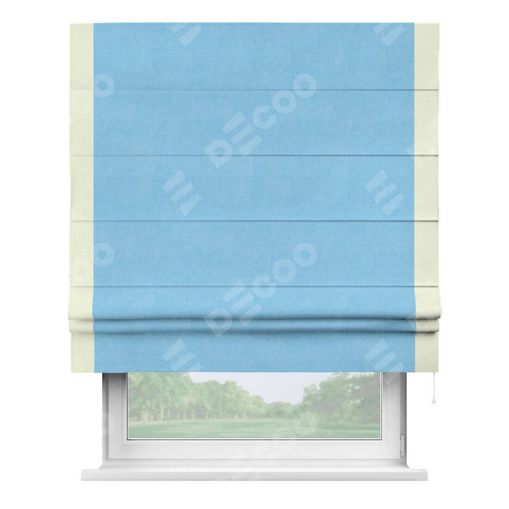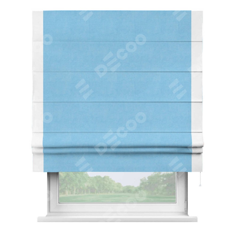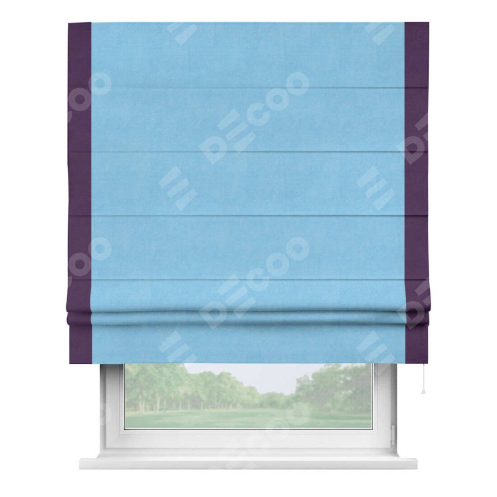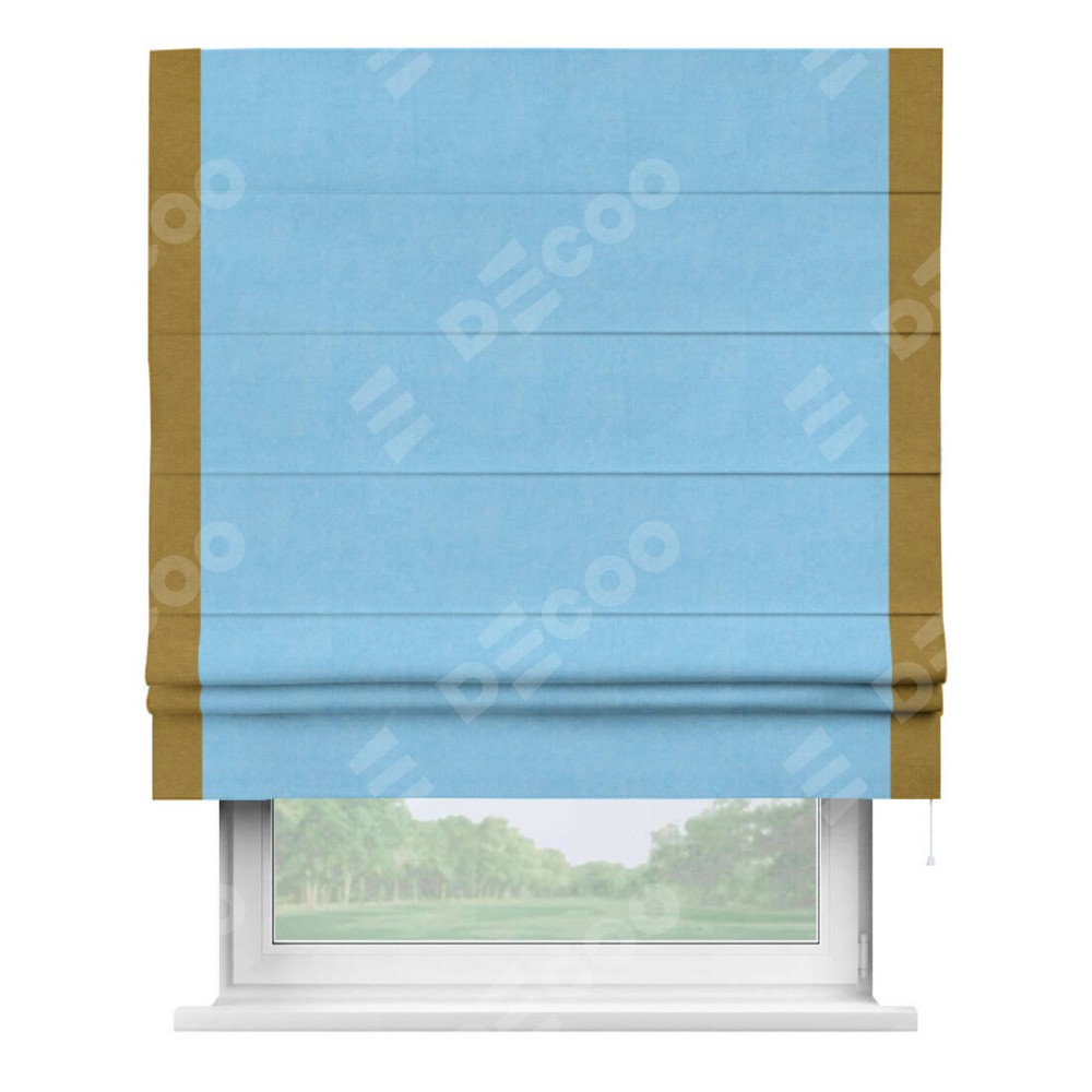 Римская штора «Кортин» с кантом Стрим Дуо, для проема, ткань вельвет голубой