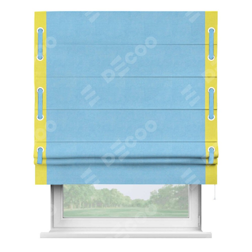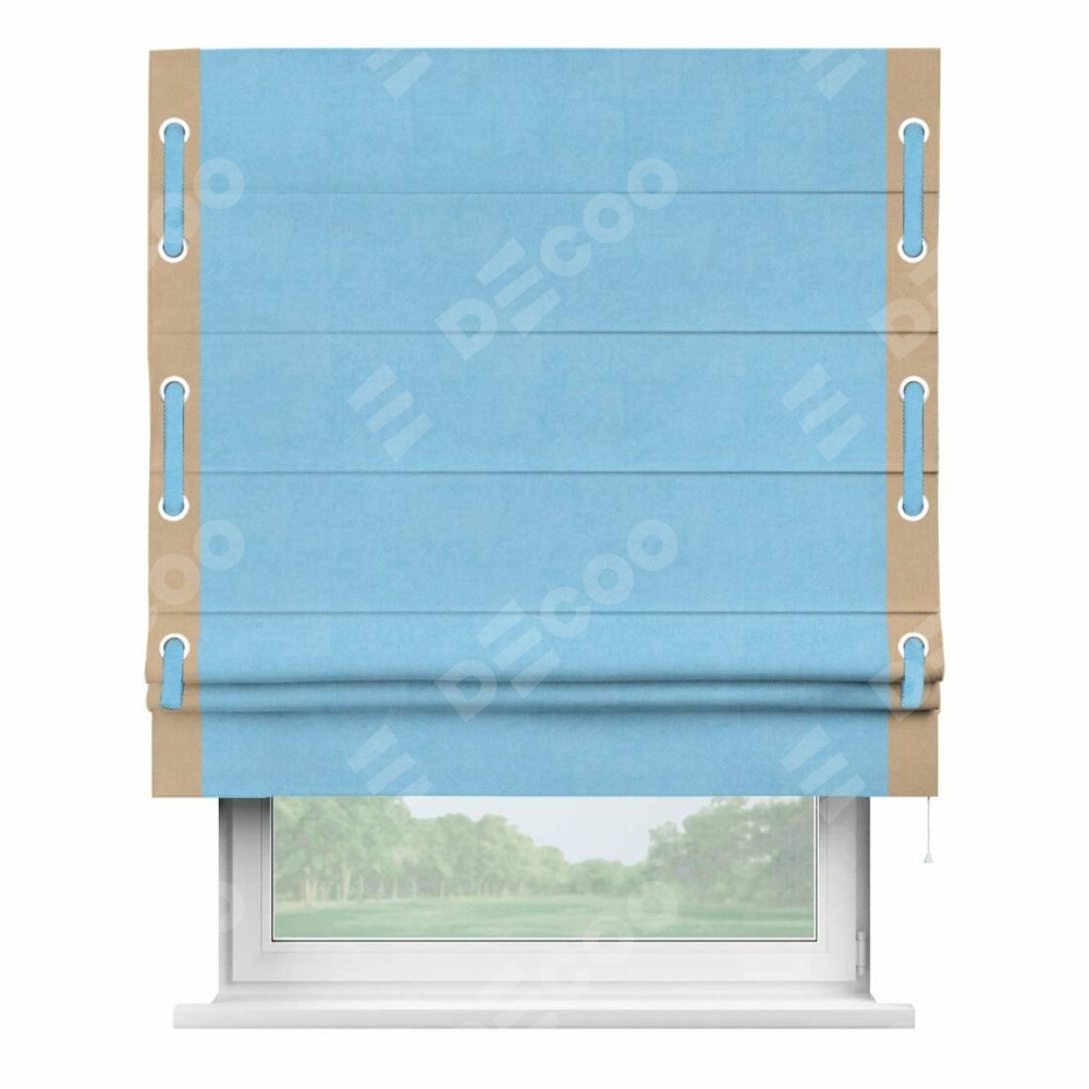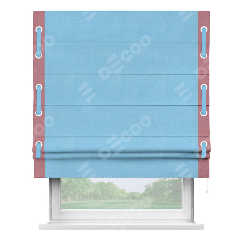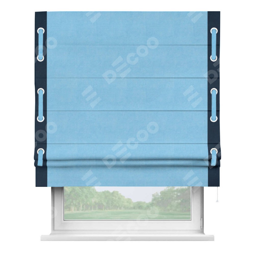 Римская штора «Кортин» с кантом Стрим Дуо (люверсы с пояском), для проема, ткань вельвет голубой