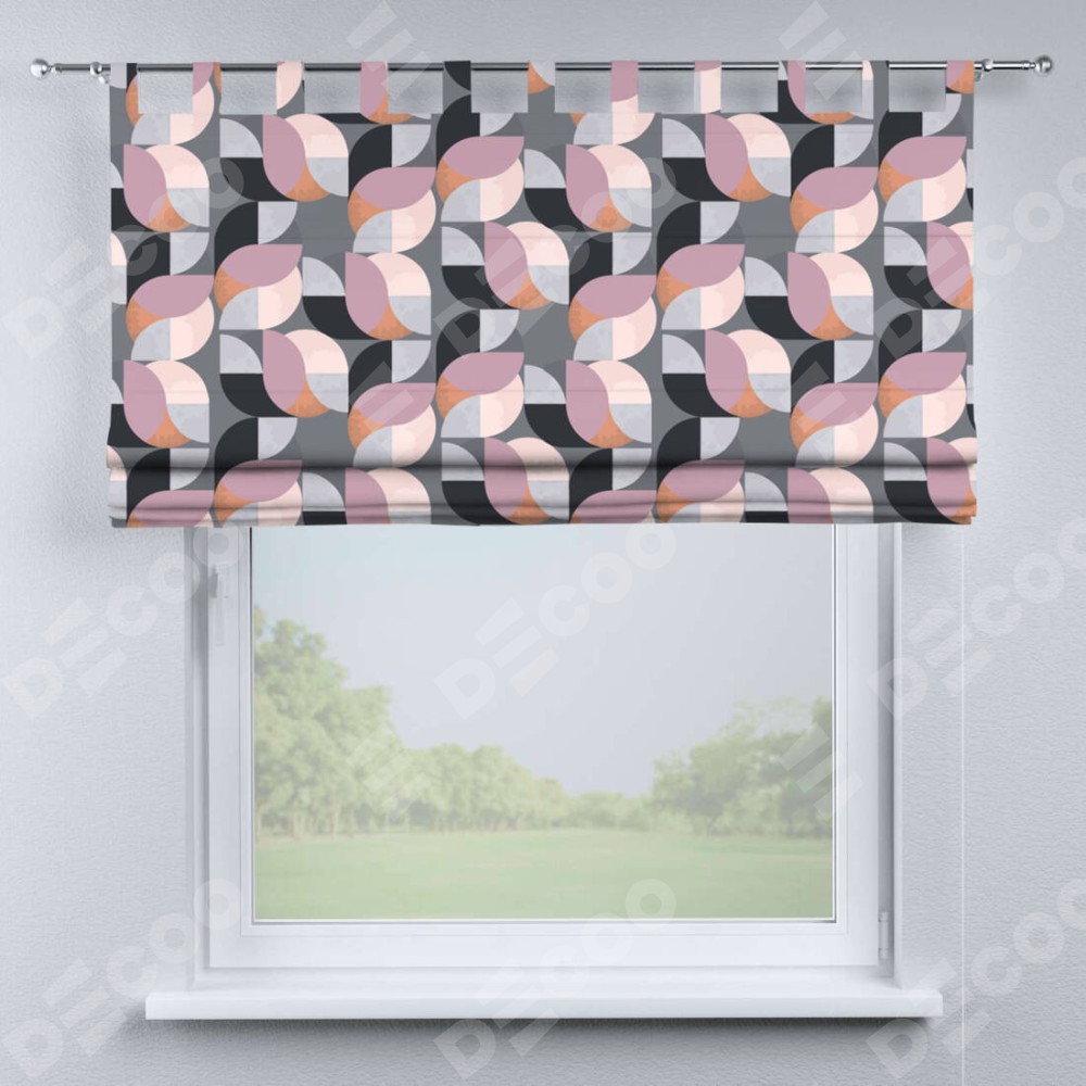 Римская штора производителя «Cortin», используется для проёма, пошита из ткани блэкаут с нанесением сублимационной печати «Абстрактный узор». Данная модель пошита на петлях, комплектуется на выбор круглым карнизом и подходит для монтажа на стену. Римская штора на петлях имеет простую систему регулировки высоты, отличительным преимуществом данной модели является простой способ монтажа. Достаточно повесить ее на трубу и штора готова!