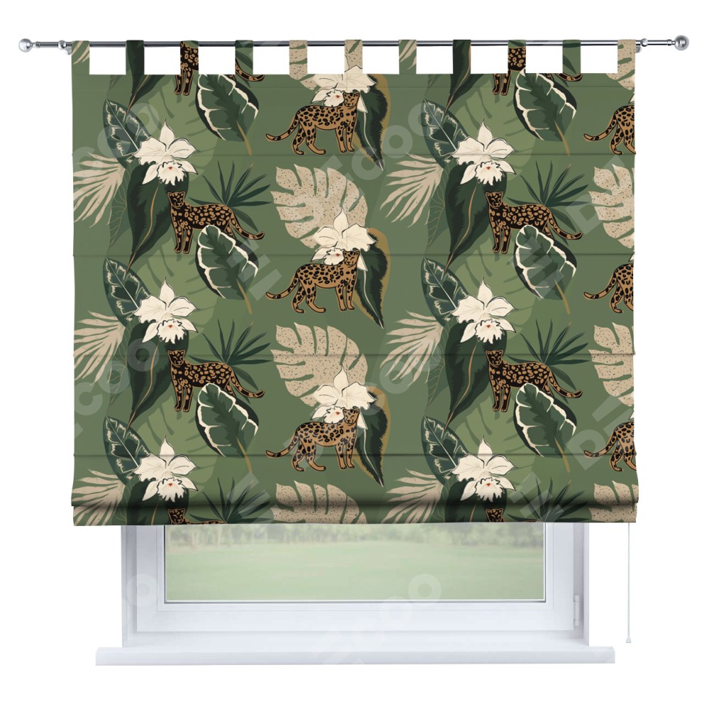 Римская штора производителя «Cortin», используется для проёма, пошита из ткани блэкаут с нанесением сублимационной печати «В тропическом лесу». Данная модель пошита на петлях, комплектуется на выбор круглым карнизом и подходит для монтажа на стену. Римская штора на петлях имеет простую систему регулировки высоты, отличительным преимуществом данной модели является простой способ монтажа. Достаточно повесить ее на трубу и штора готова!