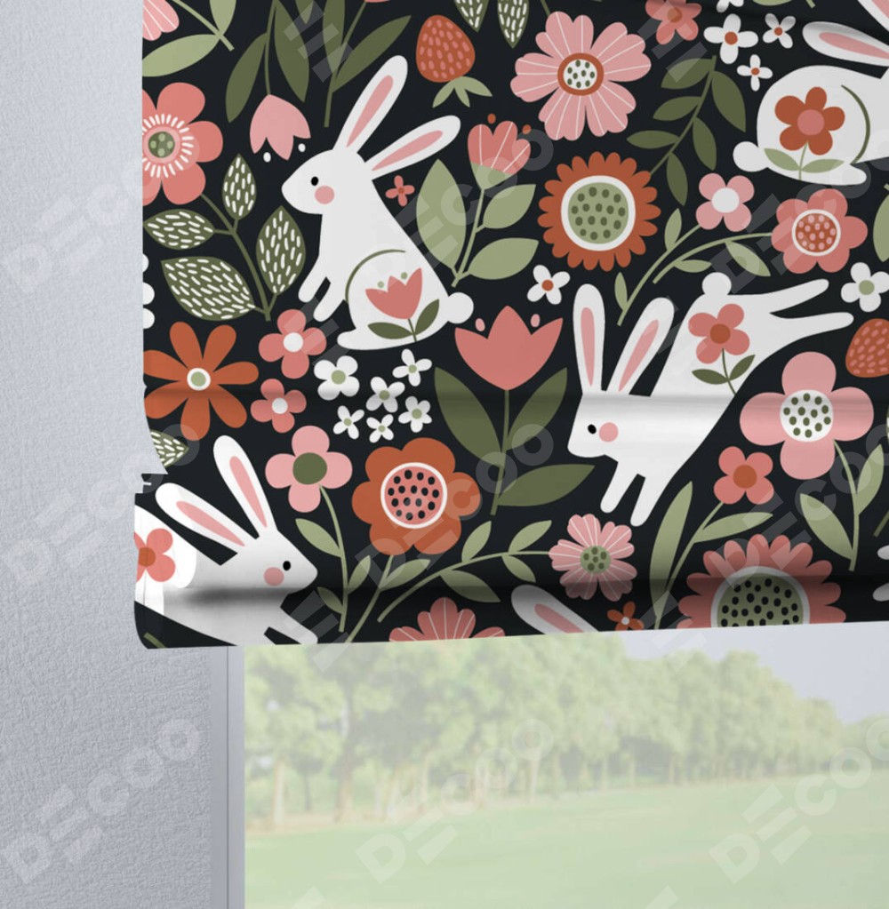Римская штора на петлях «Зайчики в цветнике»