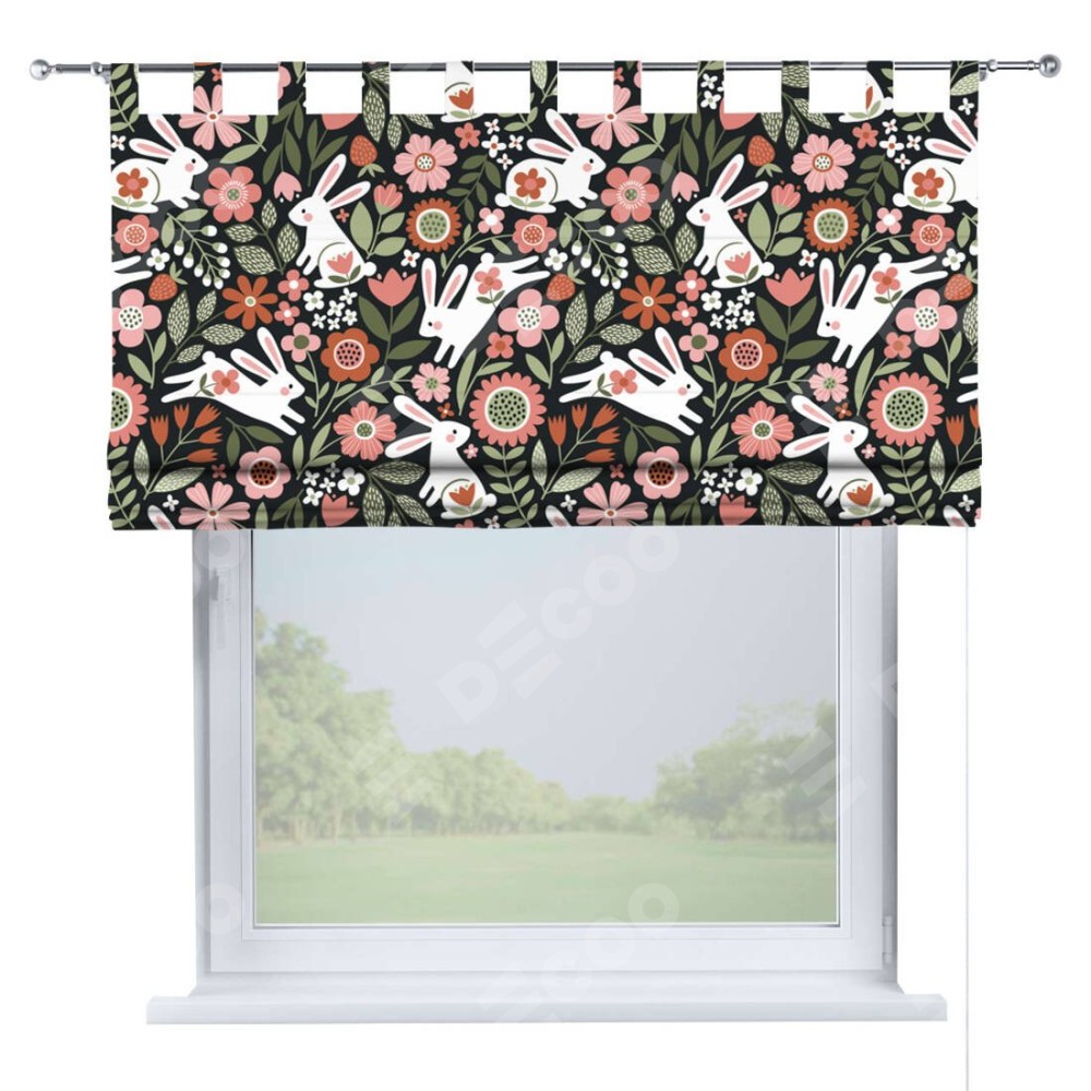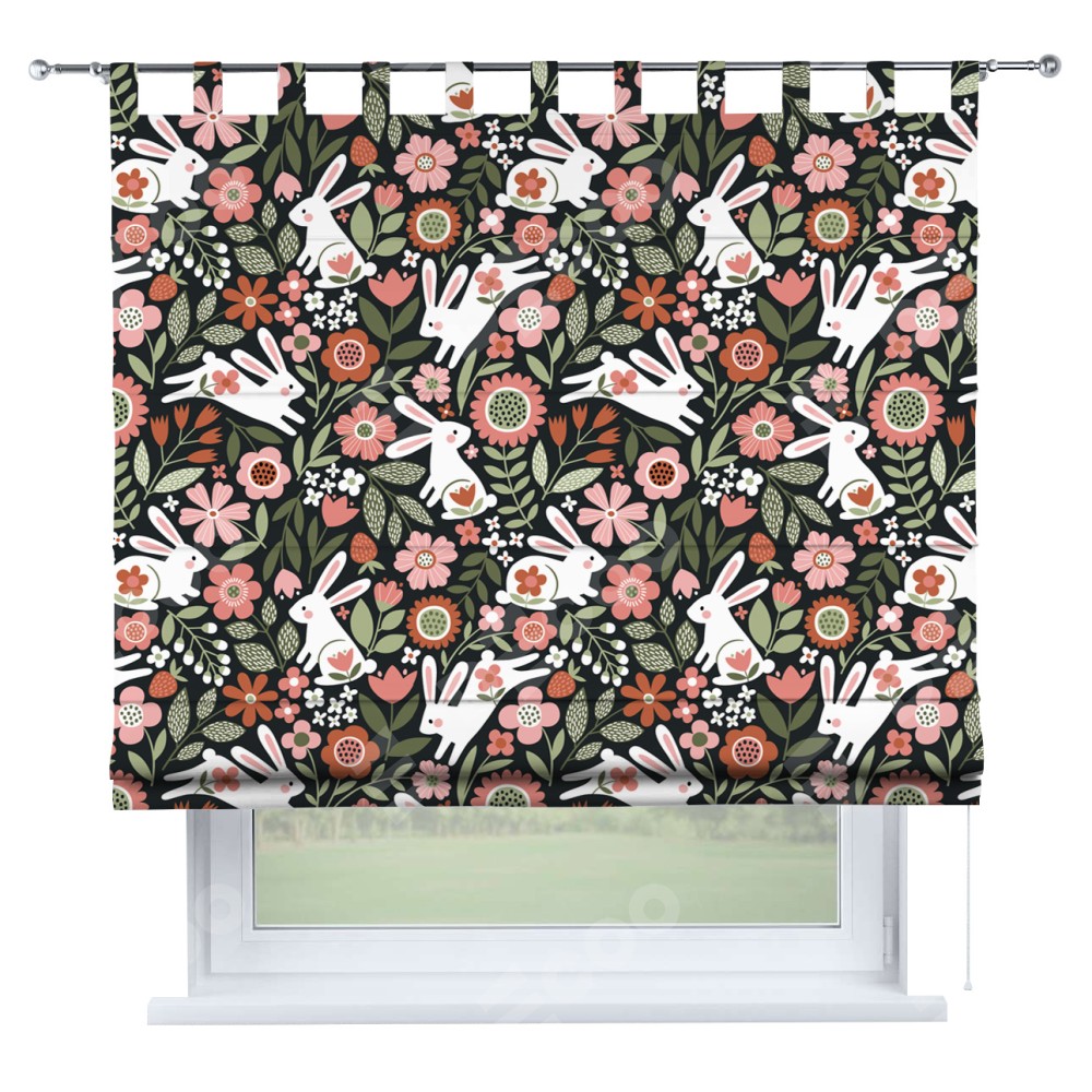 Римская штора производителя «Cortin», используется для проёма, пошита из ткани блэкаут с нанесением сублимационной печати «Зайчики в цветнике». Данная модель пошита на петлях, комплектуется на выбор круглым карнизом и подходит для монтажа на стену. Римская штора на петлях имеет простую систему регулировки высоты, отличительным преимуществом данной модели является простой способ монтажа. Достаточно повесить ее на трубу и штора готова!