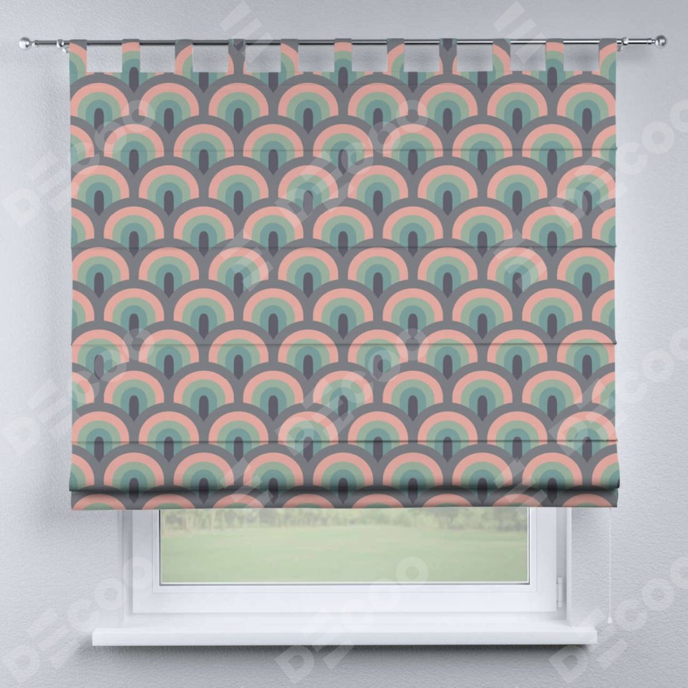 Римская штора производителя «Cortin», используется для проёма, пошита из ткани блэкаут с нанесением сублимационной печати «Ретро орнамент». Данная модель пошита на петлях, комплектуется на выбор круглым карнизом и подходит для монтажа на стену. Римская штора на петлях имеет простую систему регулировки высоты, отличительным преимуществом данной модели является простой способ монтажа. Достаточно повесить ее на трубу и штора готова!