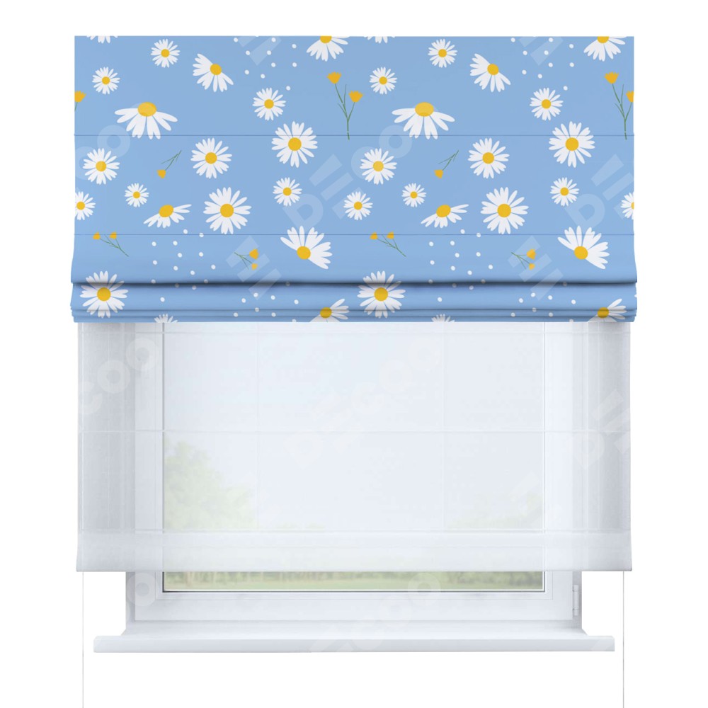Римская штора «Кортин» день-ночь «Ромашки на голубом»