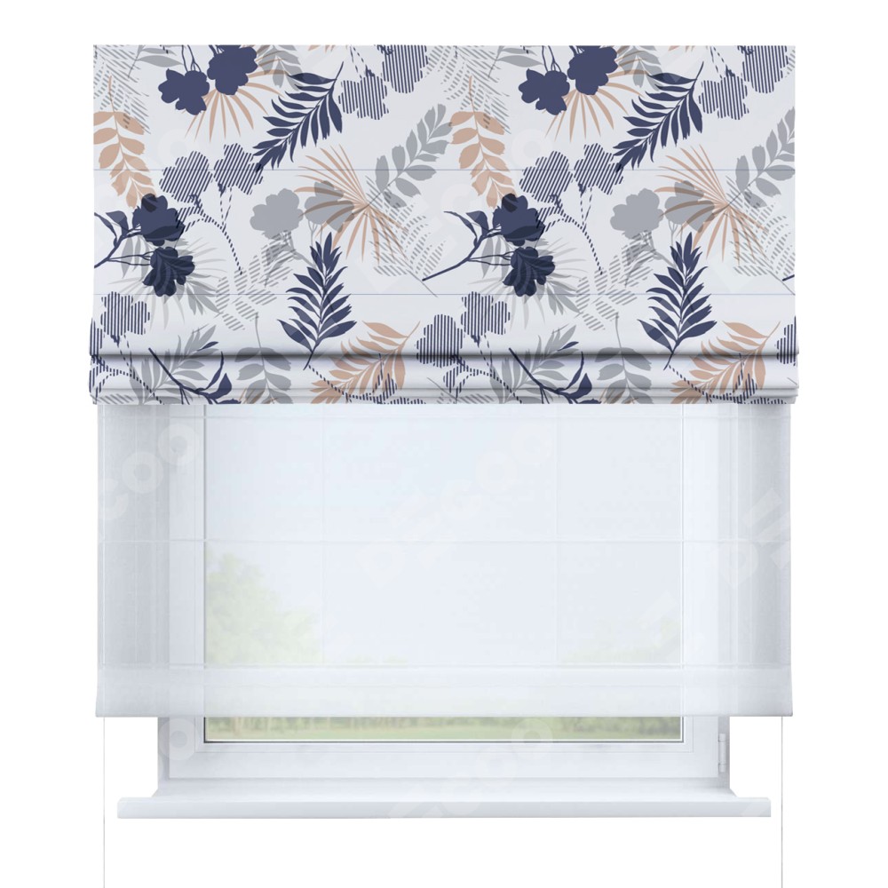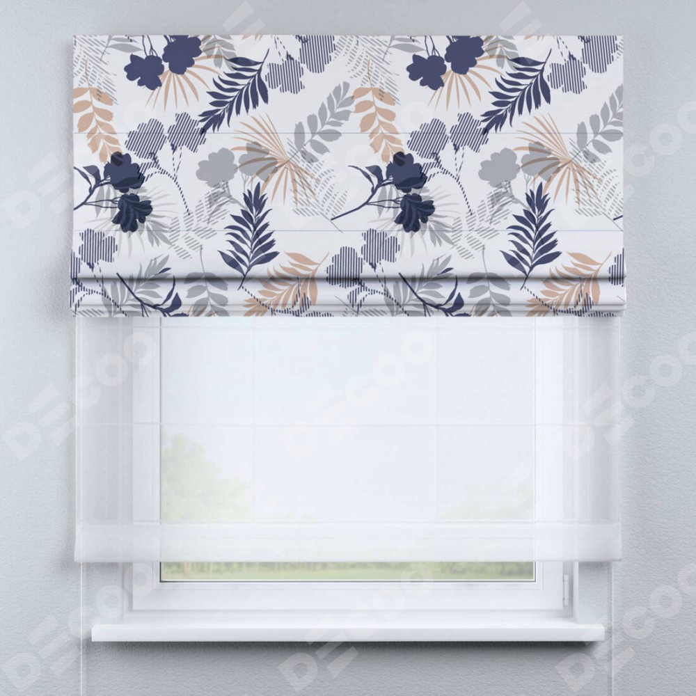 Римская штора день-ночь производителя «Cortin», используется для проёма, пошита из двух полотен, с лицевой блэкаут с нанесением сублимационной печати «Чарующий сад», вторая ткань тюль (по стандарту комплектуется тюль белого цвета артикул V-01). Имеет универсальный механизм и подходит для монтажа: на потолок, на стену и в нишу.