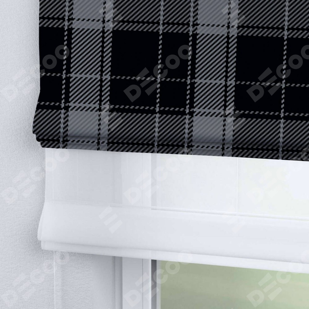 Римская штора день-ночь производителя «Cortin», используется для проёма, пошита из двух полотен, с лицевой блэкаут с нанесением сублимационной печати «Стильная клетка», вторая ткань тюль (по стандарту комплектуется тюль белого цвета артикул V-01). Имеет универсальный механизм и подходит для монтажа: на потолок, на стену и в нишу.