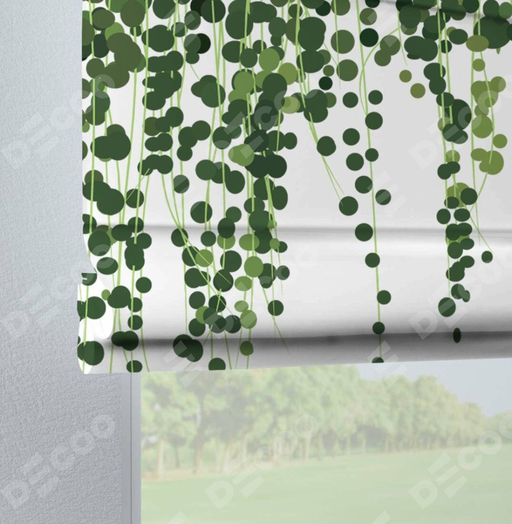 Римская штора производителя «Cortin», используется для проёма, пошита из ткани блэкаут с нанесением сублимационной печати «Зелёный занавес». Данная модель пошита на петлях, комплектуется на выбор круглым карнизом и подходит для монтажа на стену. Римская штора на петлях имеет простую систему регулировки высоты, отличительным преимуществом данной модели является простой способ монтажа. Достаточно повесить ее на трубу и штора готова!