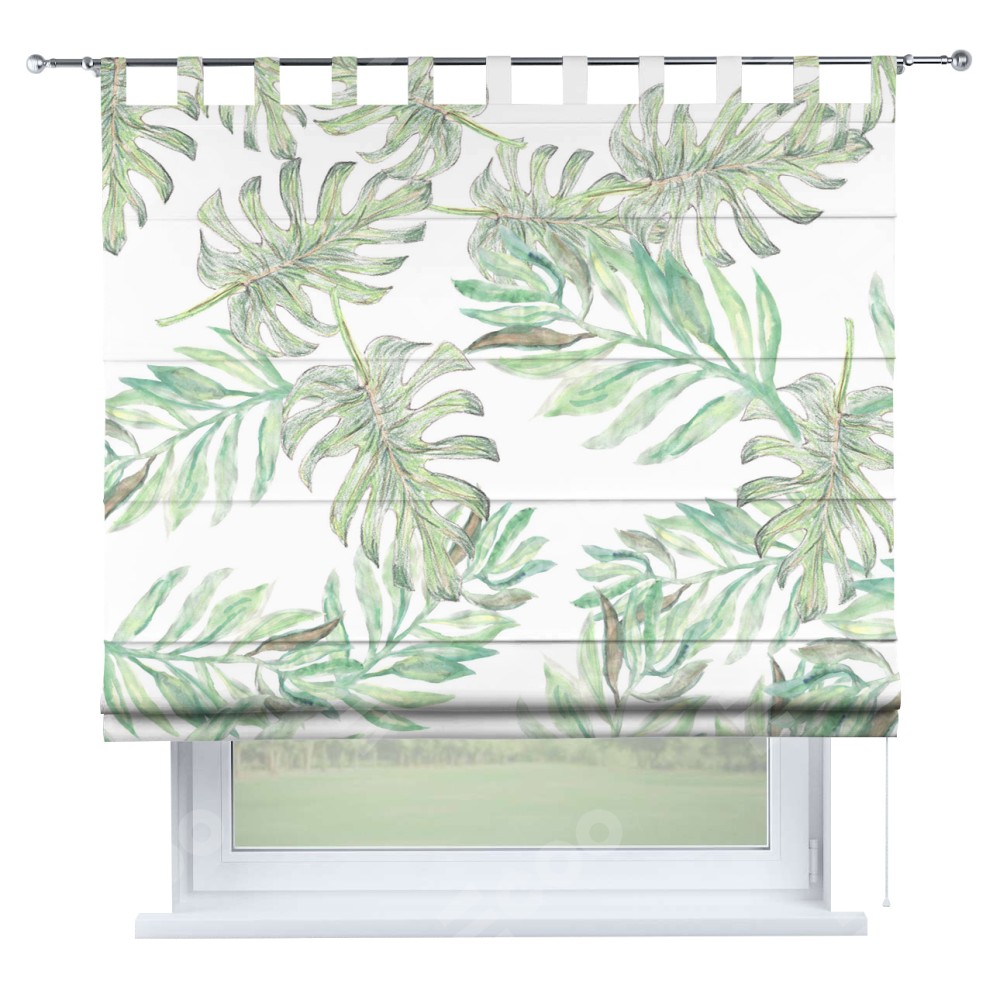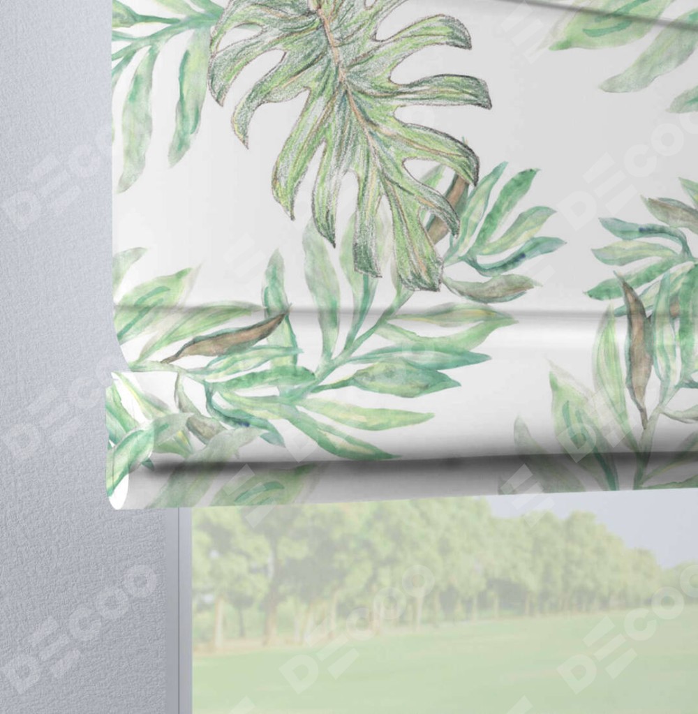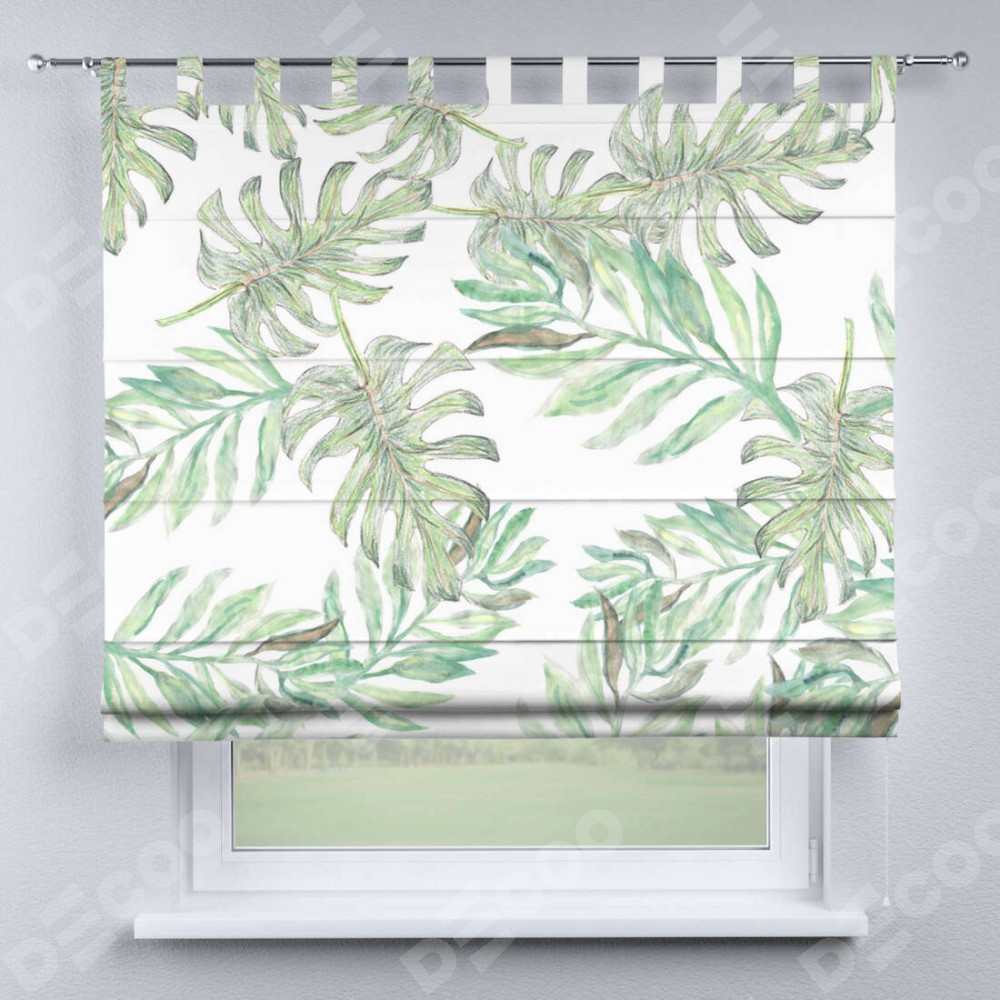 Римская штора производителя «Cortin», используется для проёма, пошита из ткани блэкаут с нанесением сублимационной печати «Листья монстеры». Данная модель пошита на петлях, комплектуется на выбор круглым карнизом и подходит для монтажа на стену. Римская штора на петлях имеет простую систему регулировки высоты, отличительным преимуществом данной модели является простой способ монтажа. Достаточно повесить ее на трубу и штора готова!