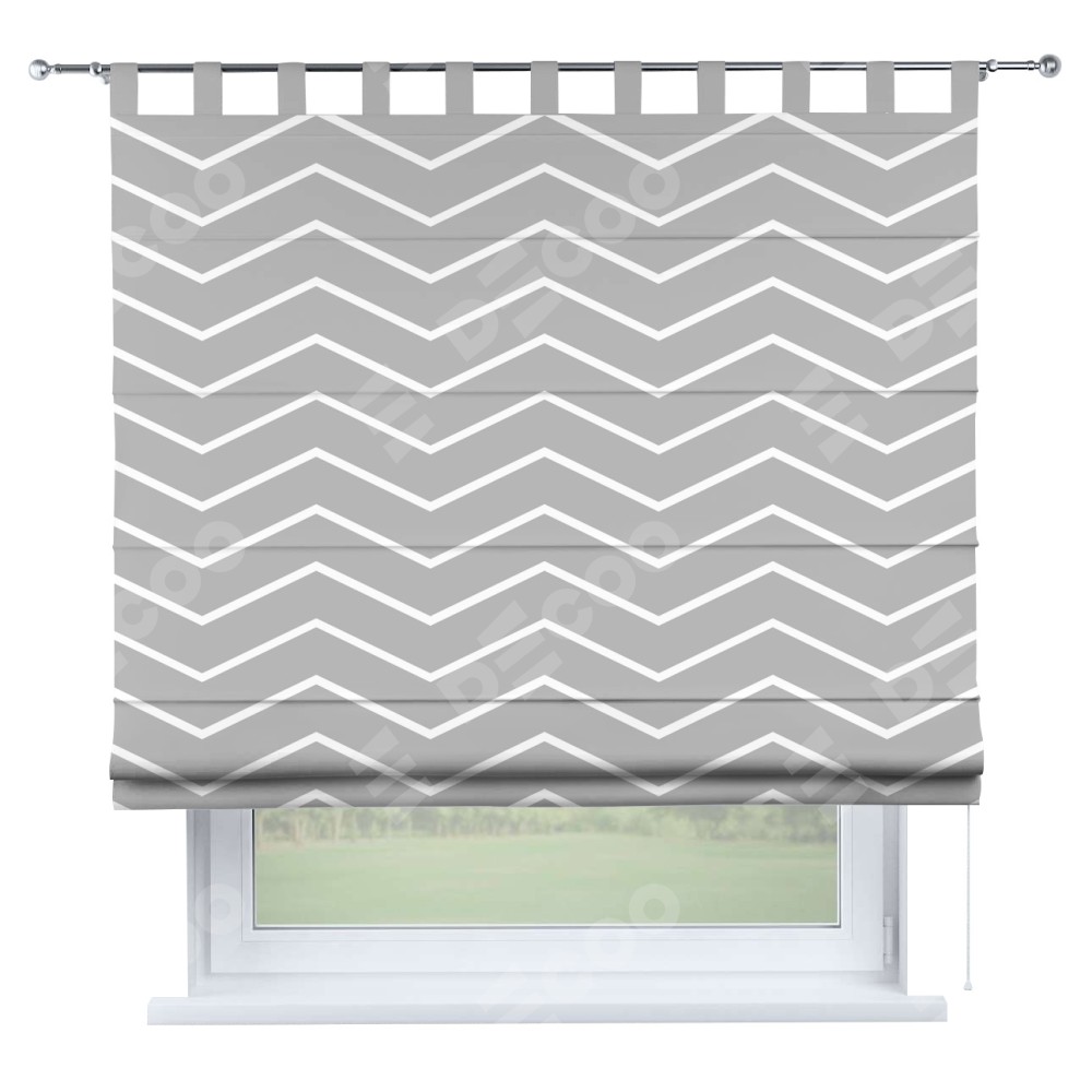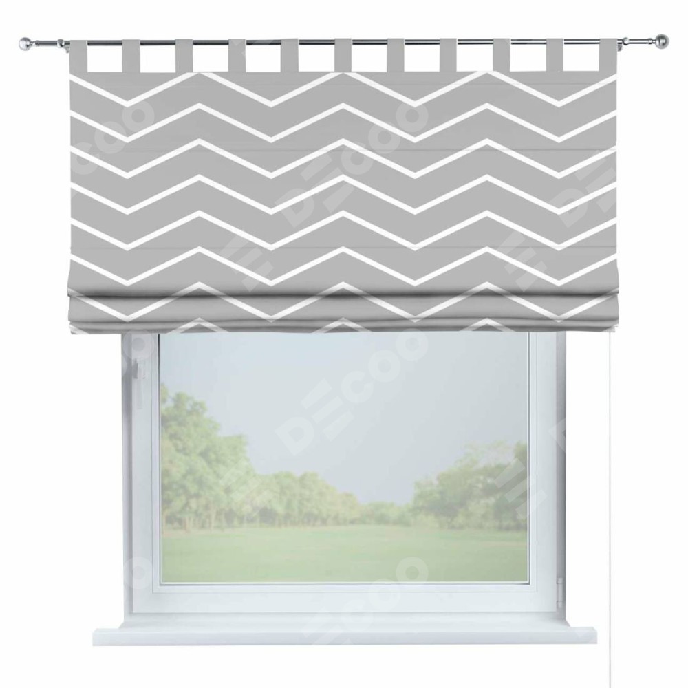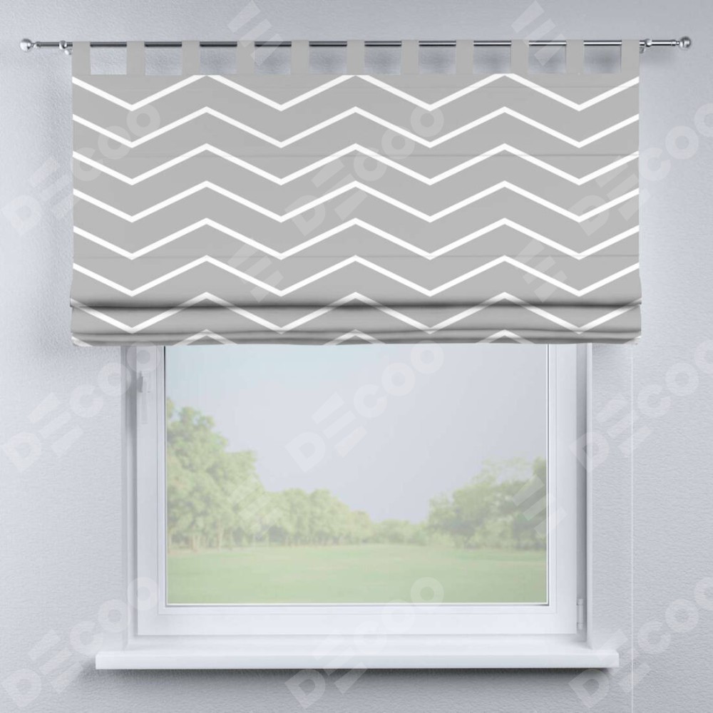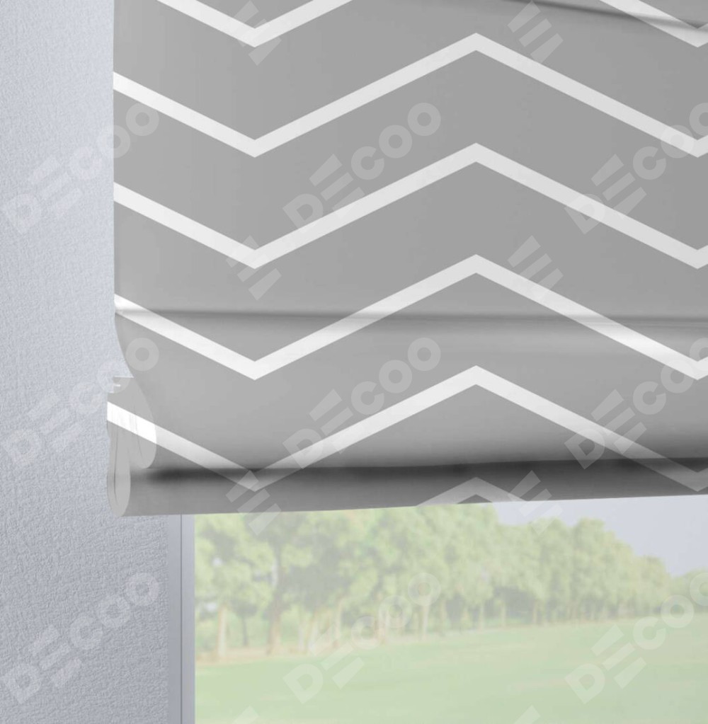 Римская штора производителя «Cortin», используется для проёма, пошита из ткани блэкаут с нанесением сублимационной печати «Серый зигзаг». Данная модель пошита на петлях, комплектуется на выбор круглым карнизом и подходит для монтажа на стену. Римская штора на петлях имеет простую систему регулировки высоты, отличительным преимуществом данной модели является простой способ монтажа. Достаточно повесить ее на трубу и штора готова!