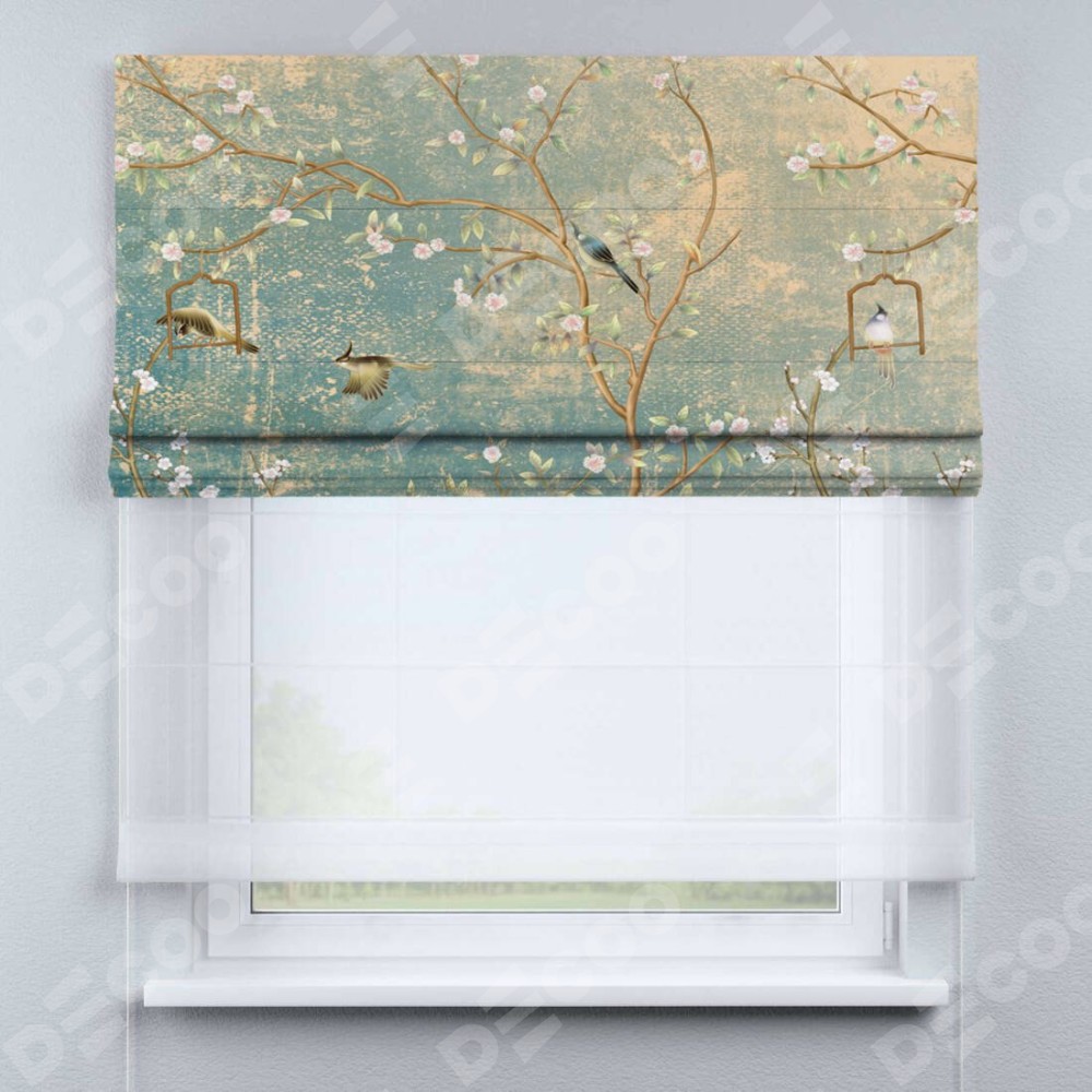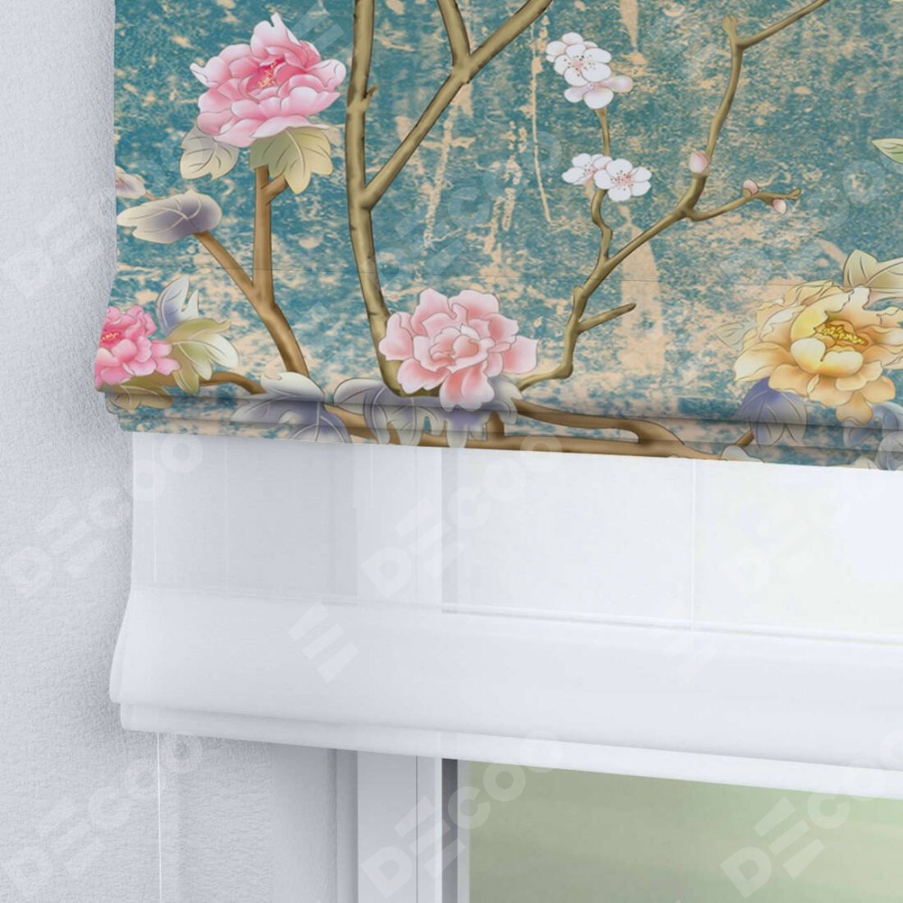 Римская штора день-ночь производителя «Cortin», используется для проёма, пошита из двух полотен, с лицевой блэкаут с нанесением сублимационной печати «Цветущий сад», вторая ткань тюль (по стандарту комплектуется тюль белого цвета артикул V-01). Имеет универсальный механизм и подходит для монтажа: на потолок, на стену и в нишу.