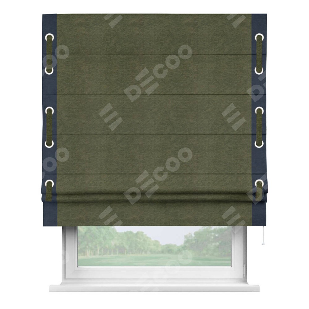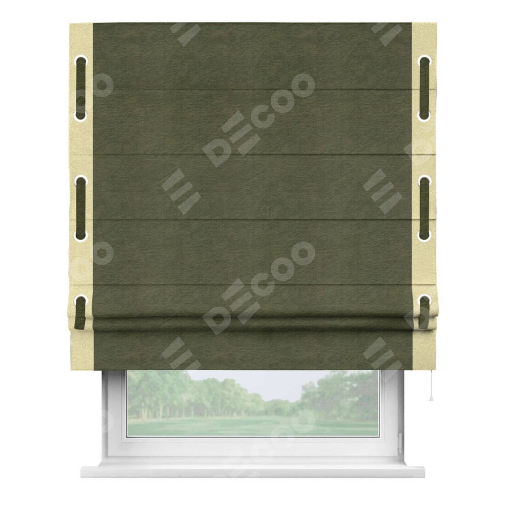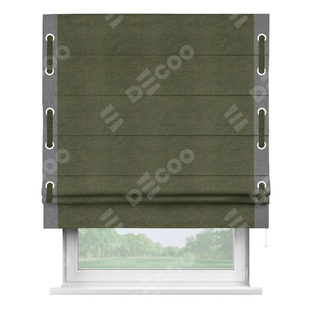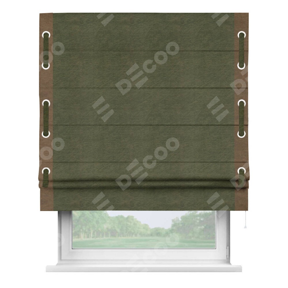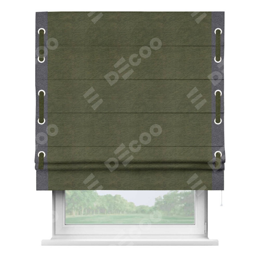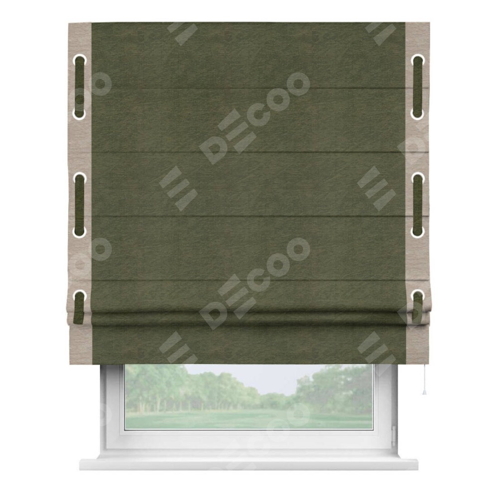 Римская штора «Кортин» с кантом Стрим Дуо (люверсы с пояском), для проема, ткань софт однотонный зелёный