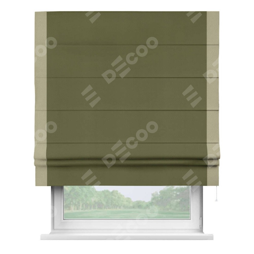 Римская штора «Кортин» с кантом Стрим Дуо, для проема, ткань блэкаут однотонный зелёный