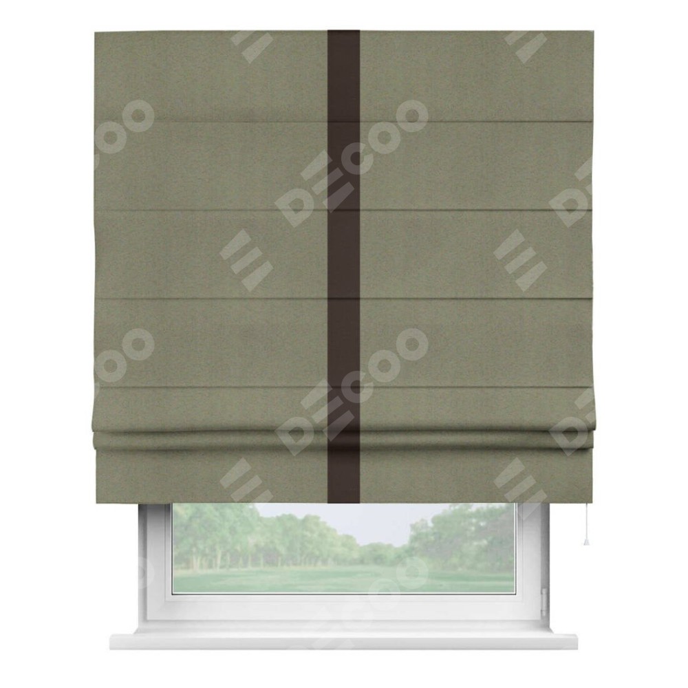 Римская штора «Кортин» с кантом Хайвэй, для проема, ткань блэкаут однотонный серо-коричневый