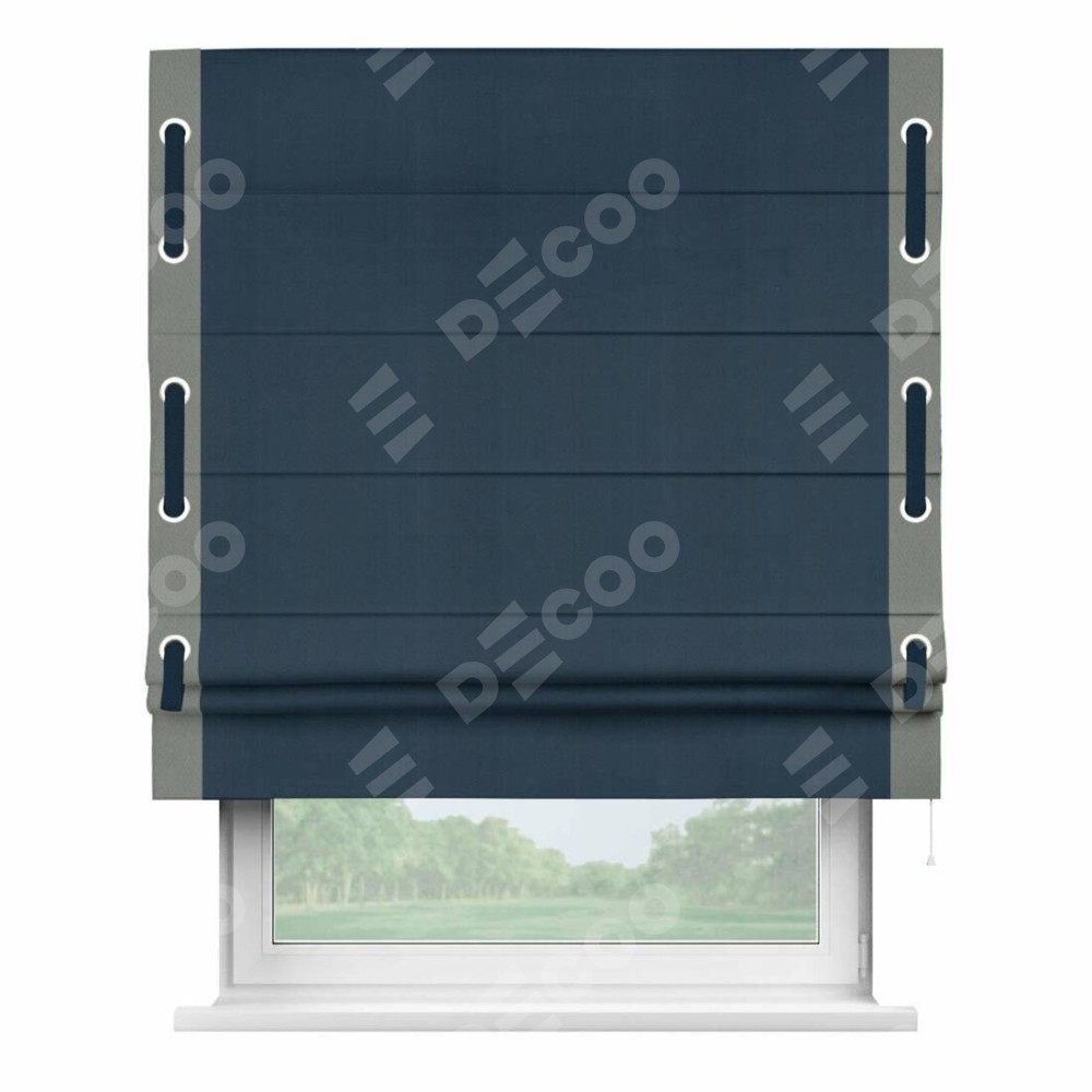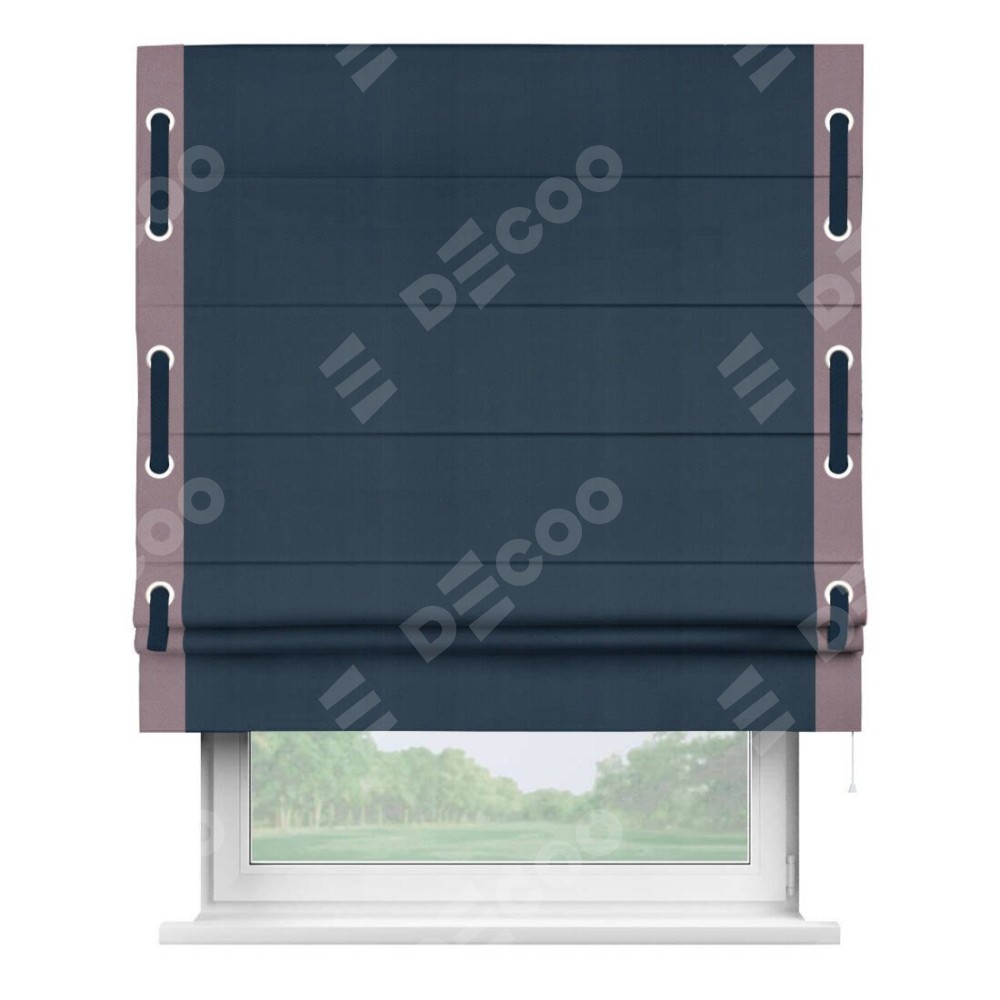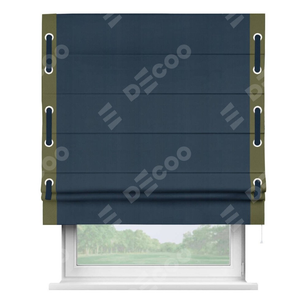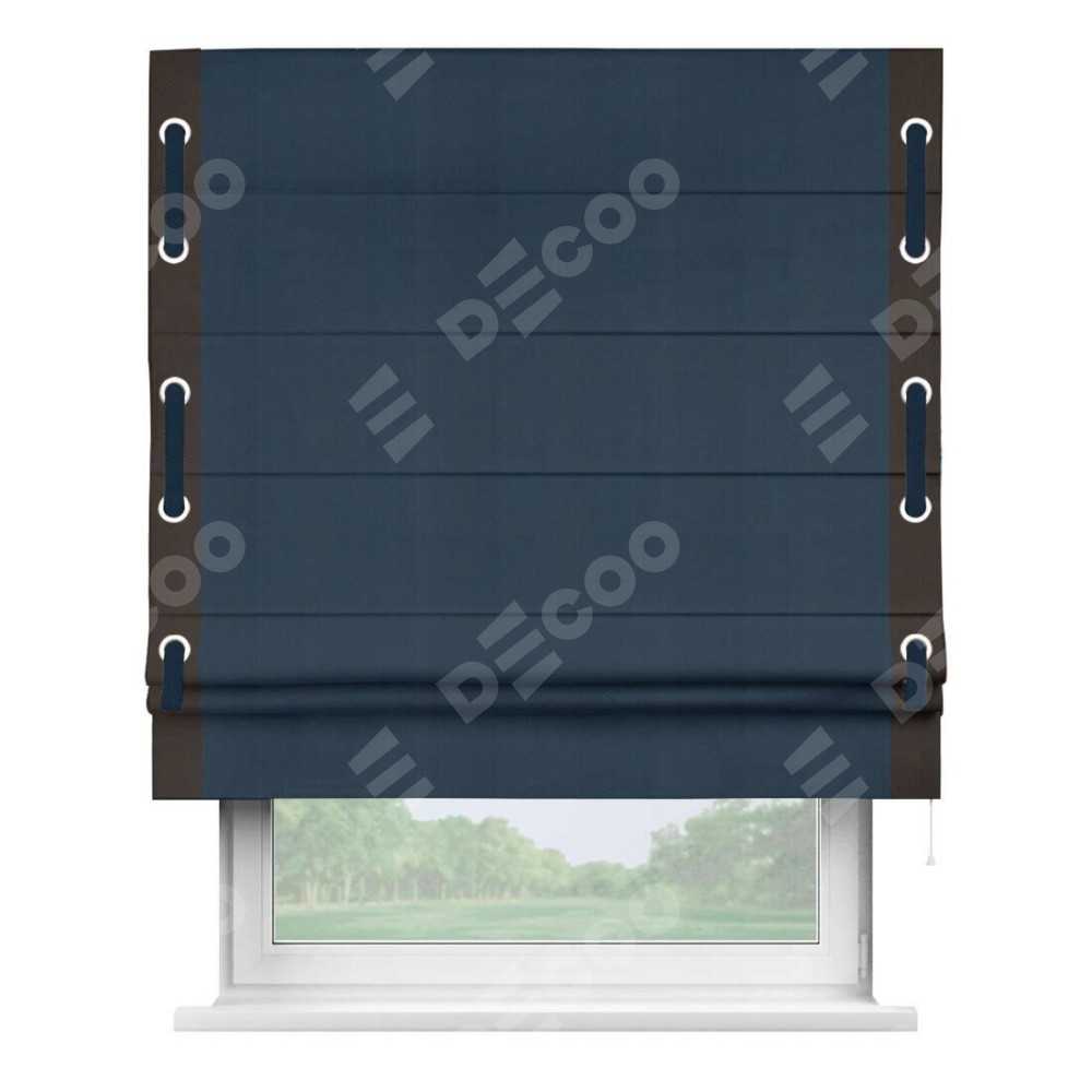 Римская штора «Кортин» с кантом Стрим Дуо (люверсы с пояском), для проема, ткань блэкаут однотонный синий