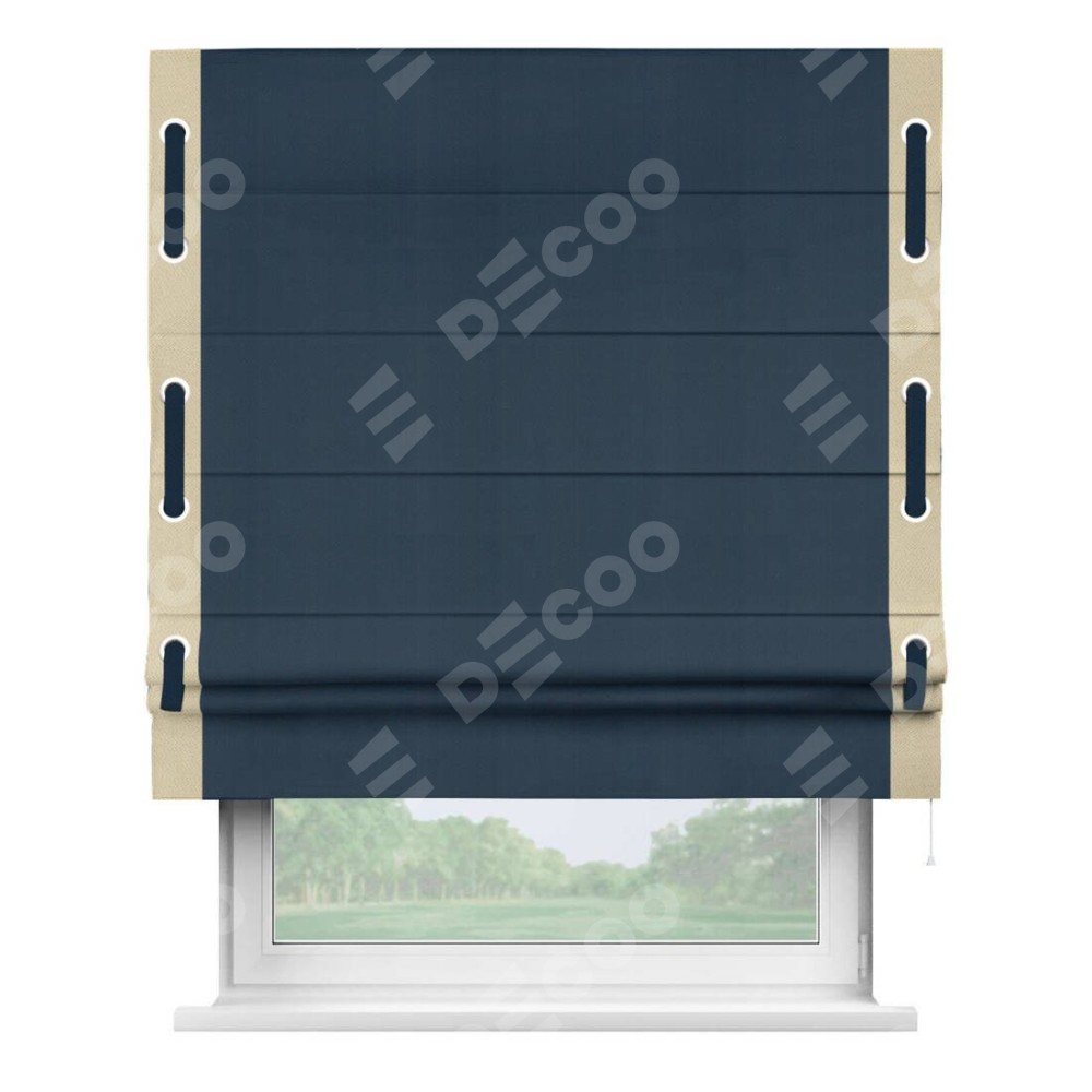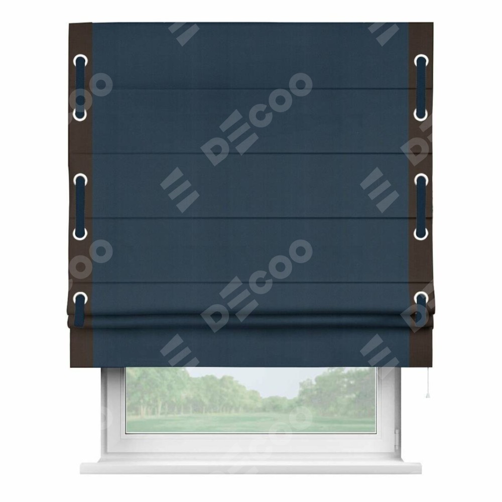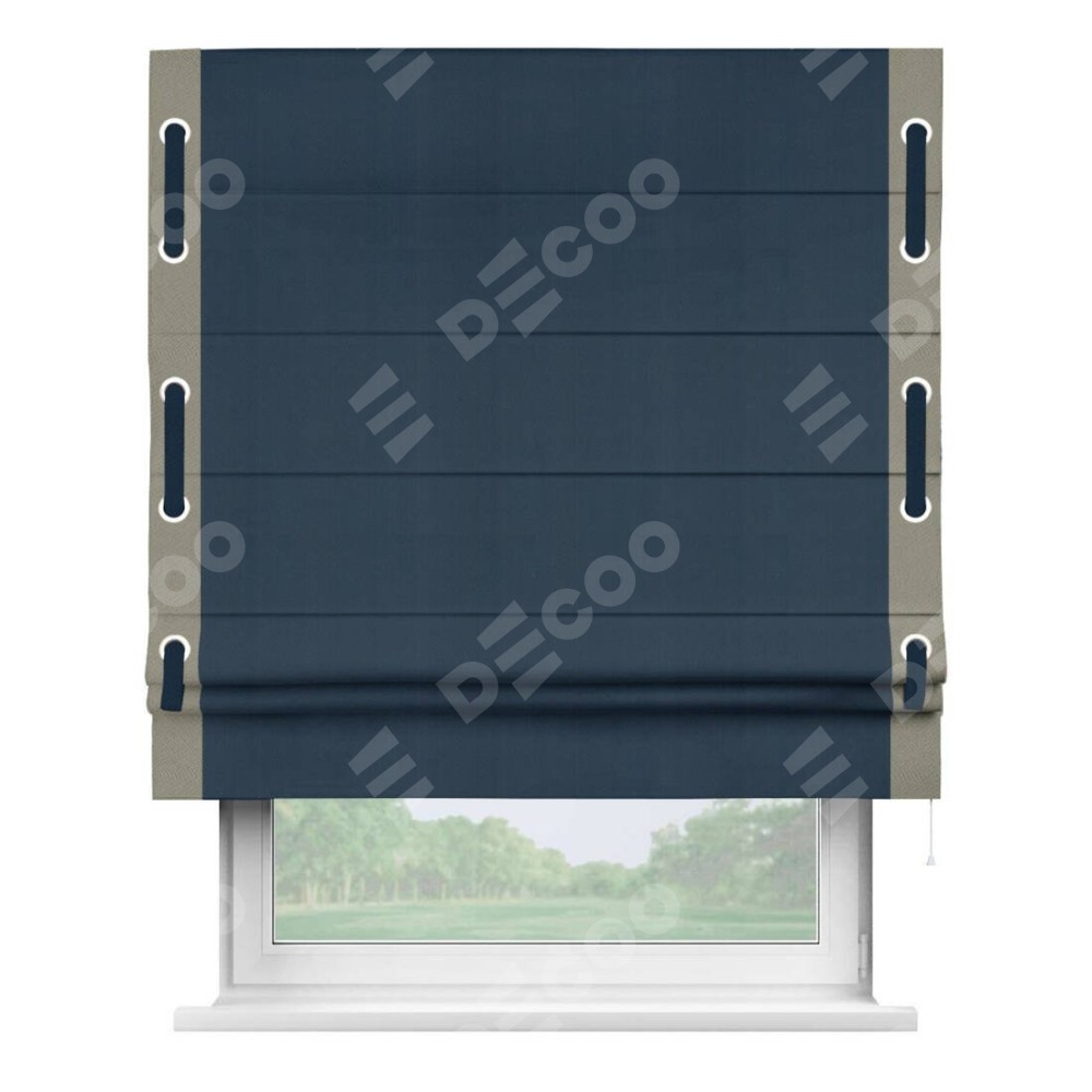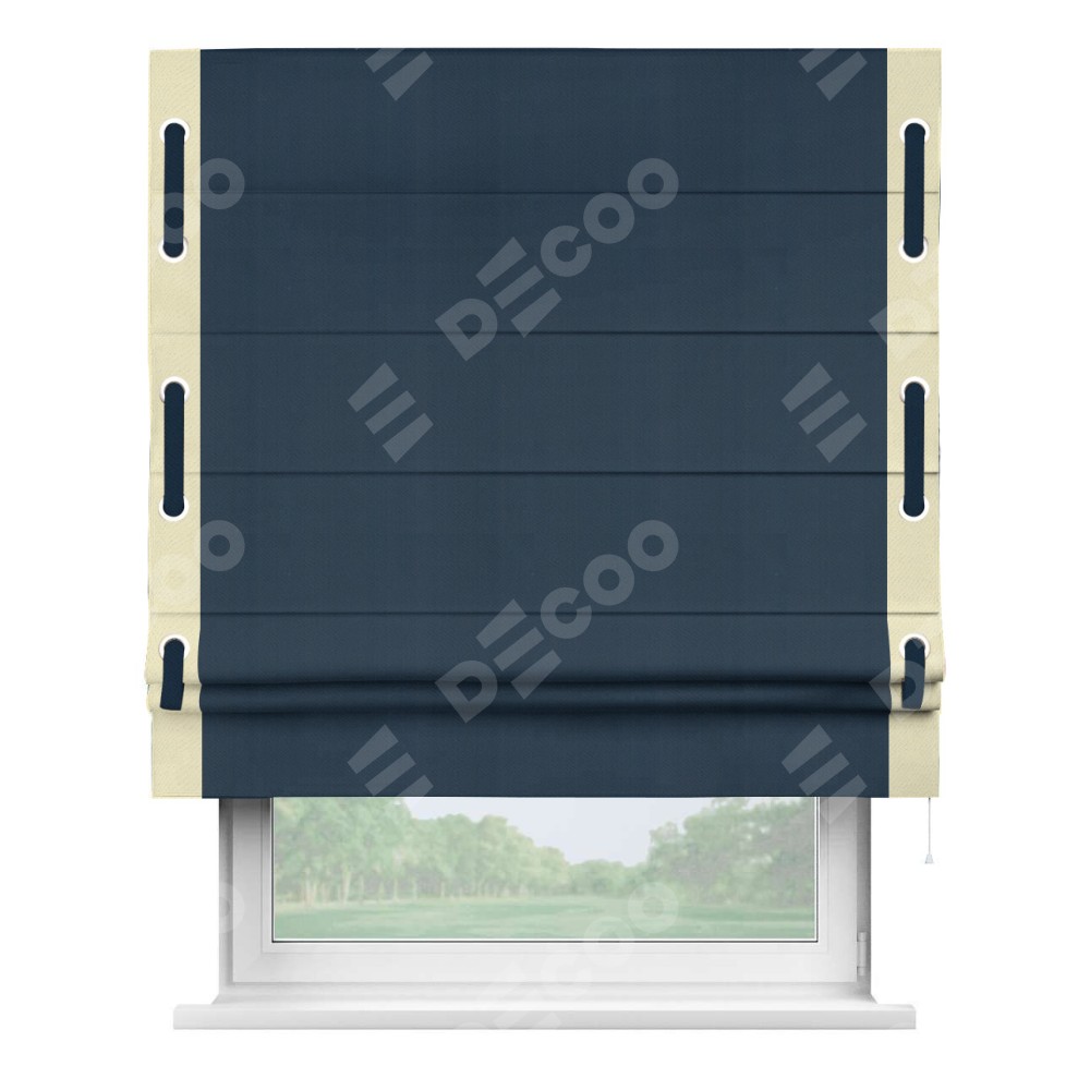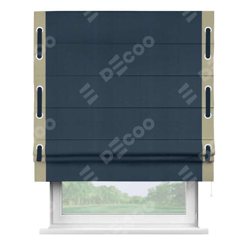 Римская штора «Кортин» с кантом Стрим Дуо (люверсы с пояском), для проема, ткань блэкаут однотонный синий