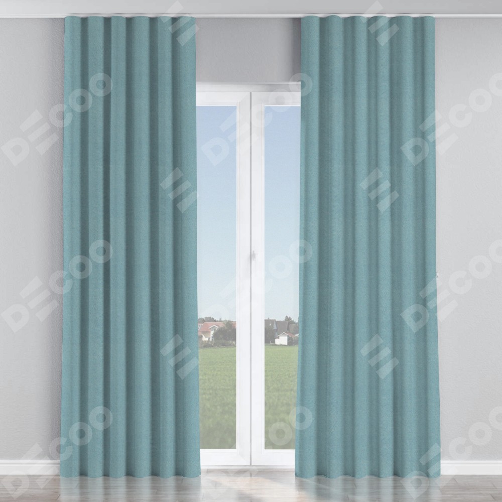 Комплект прямых штор, от производителя «Cortin», пошиты из ткани блэкаут с блеском синий, артикул ткани 34625. С изнаночной стороны в верхней части штор пристрачивается шторная лента с декоративными складками «Волна». Обратная сторона основного материала черного цвета, что обеспечивает необходимую светонепроницаемость. Для создания элегантных складок прямые шторы шьются по стандарту с коэффициентом 1:2 (на 100 см. ширины проёма 200 см. ширины ткани).
