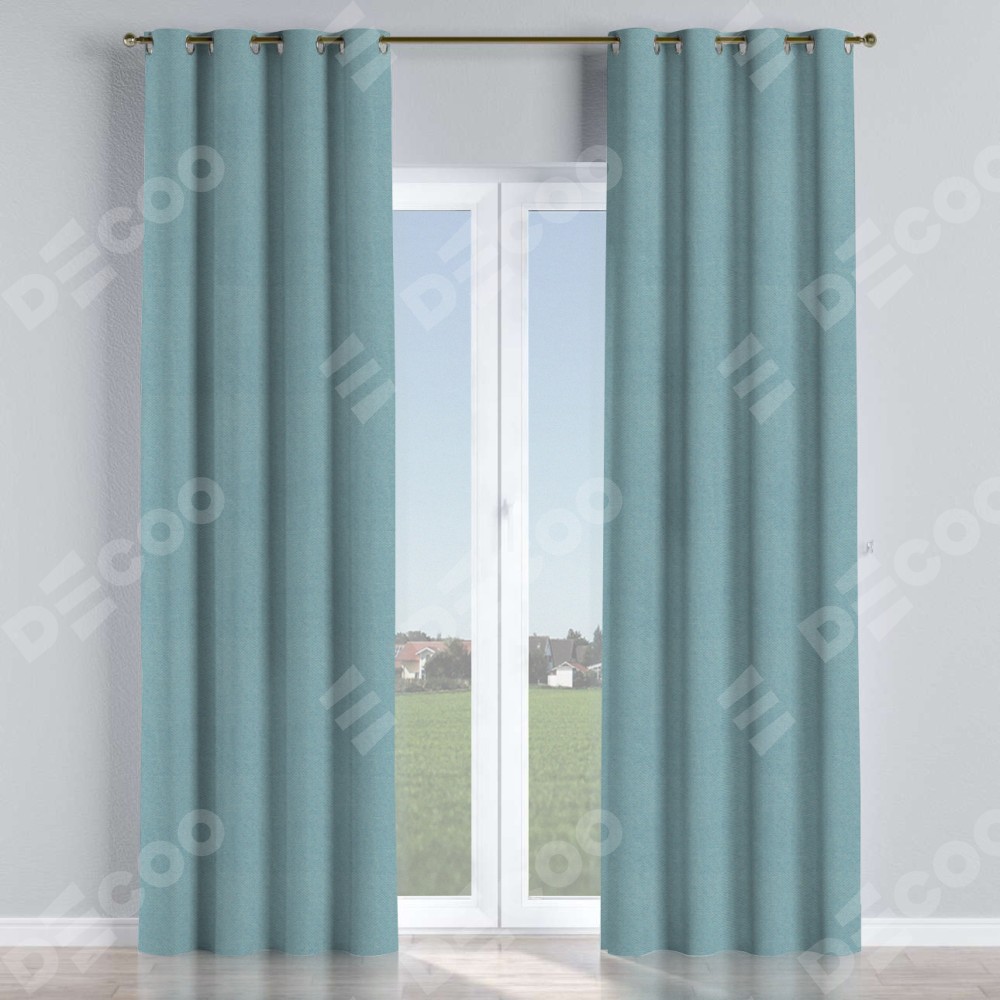Комплект прямых штор, от производителя «Cortin», пошиты из ткани блэкаут с блеском синий, артикул ткани 34625. Обратная сторона основного материала черного цвета, что обеспечивает необходимую светонепроницаемость. Данная модель пошита на люверсах, комплектуется на выбор круглым карнизом и подходит для монтажа на стену или потолок. Прямые шторы на люверсах шьются по стандарту с коэффициентом 1/2 (на 100 см. ширины проёма 200 см. ширины ткани), отличительным преимуществом данной модели является простой способ монтажа. Достаточно повесить ее на трубу и штора готова!