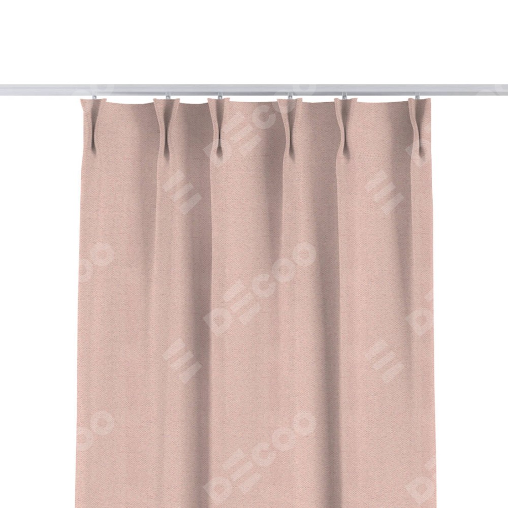 Комплект прямых штор, от производителя «Cortin», пошиты из ткани блэкаут с блеском сиреневый, артикул ткани 34649. С изнаночной стороны в верхней части штор пристрачивается шторная лента с декоративными складками «Кустик». Обратная сторона основного материала черного цвета, что обеспечивает необходимую светонепроницаемость. Для создания элегантных складок прямые шторы шьются по стандарту с коэффициентом 1:2 (на 100 см. ширины проёма 200 см. ширины ткани).