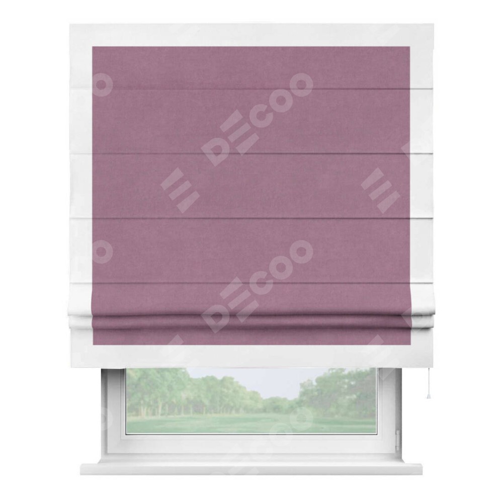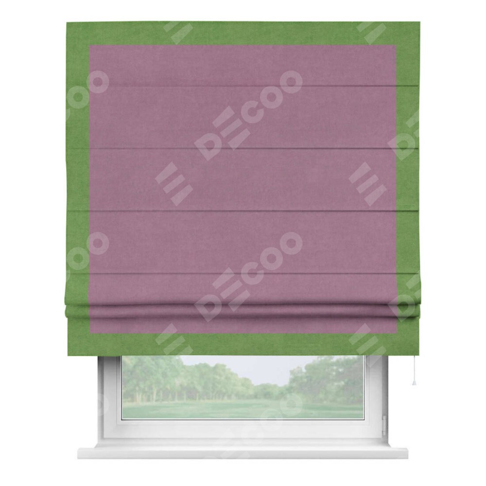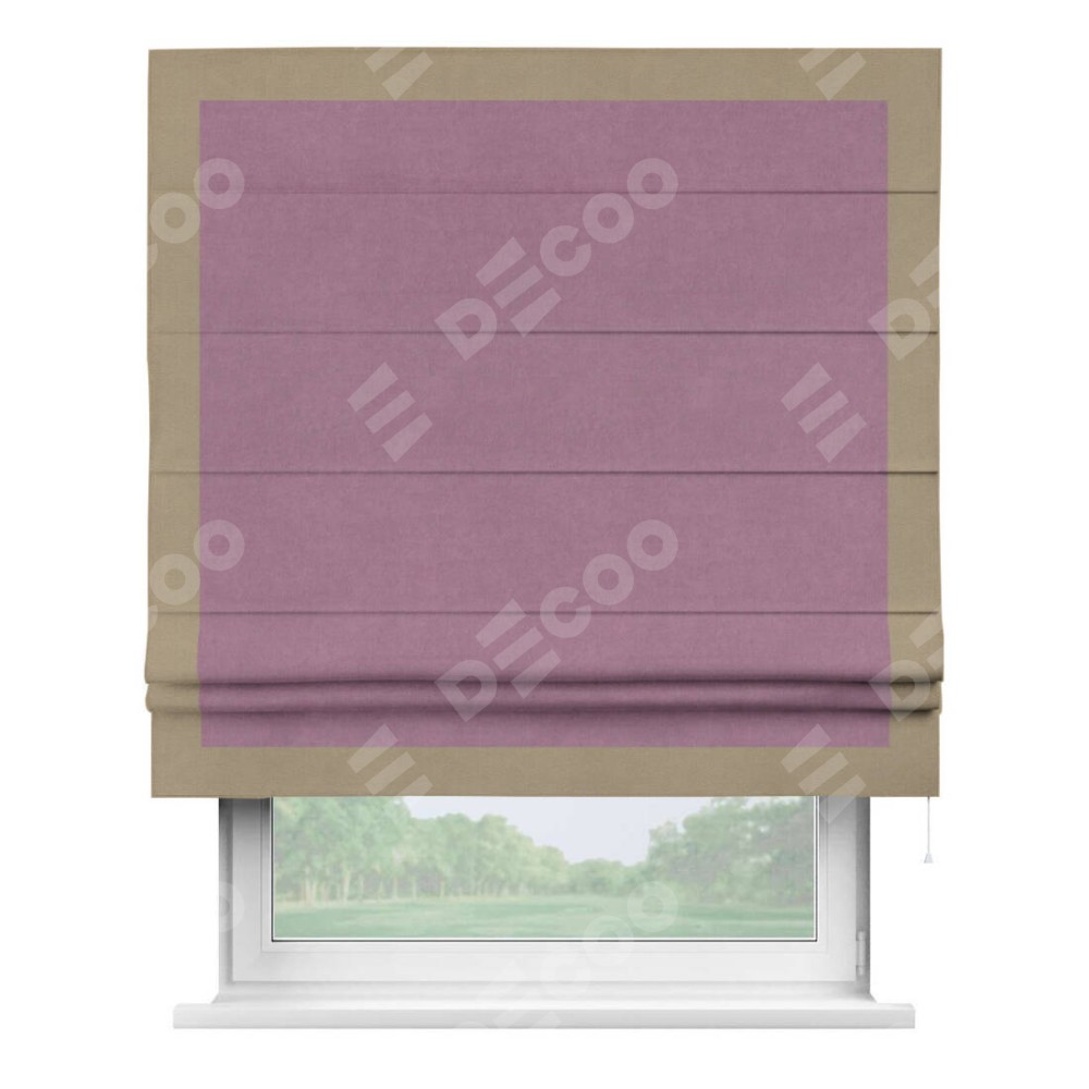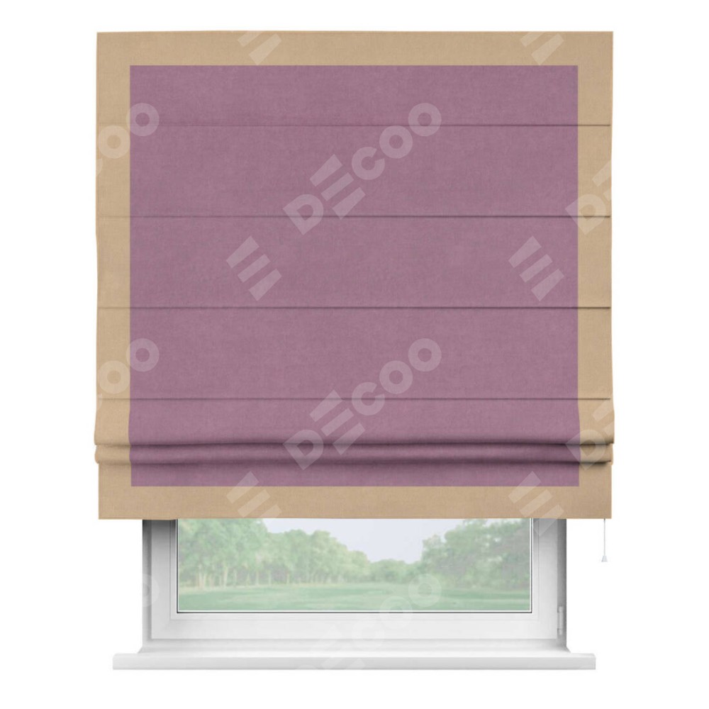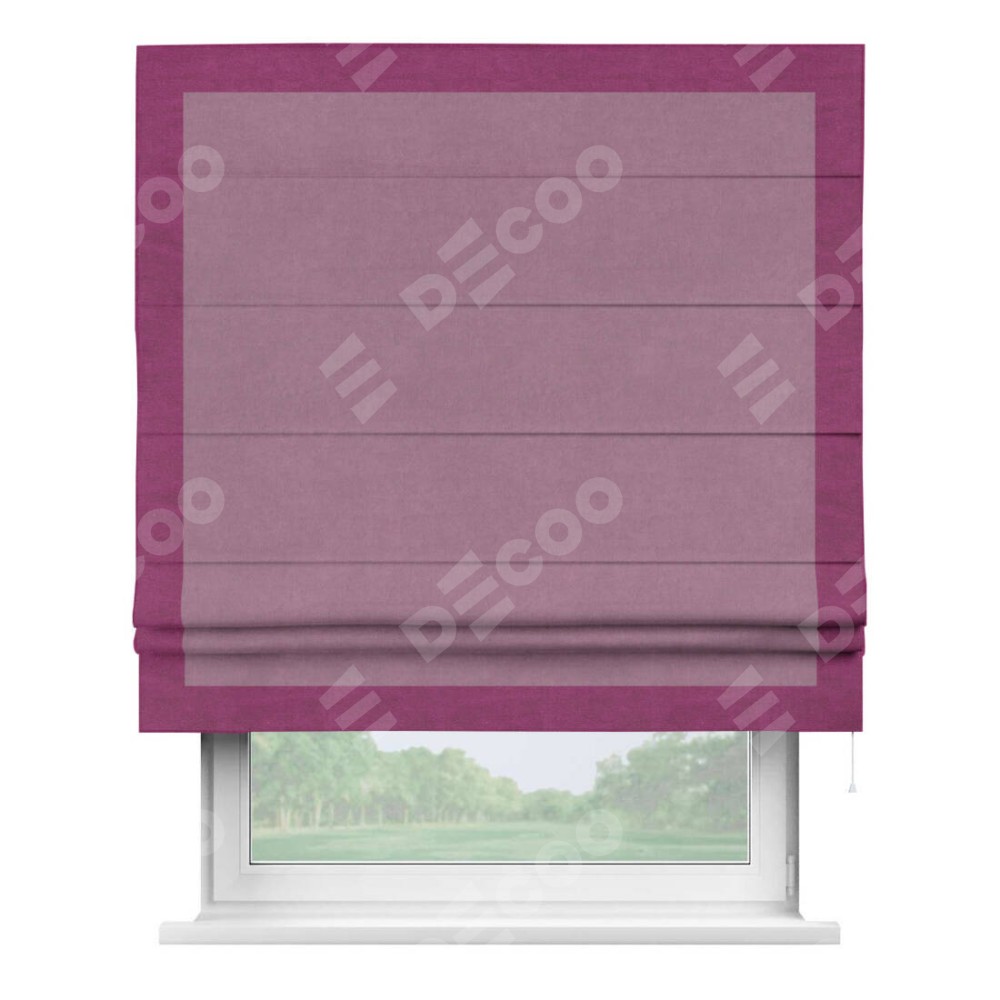 Римская штора «Кортин» с кантом Чесс, для проема, ткань вельвет лиловый
