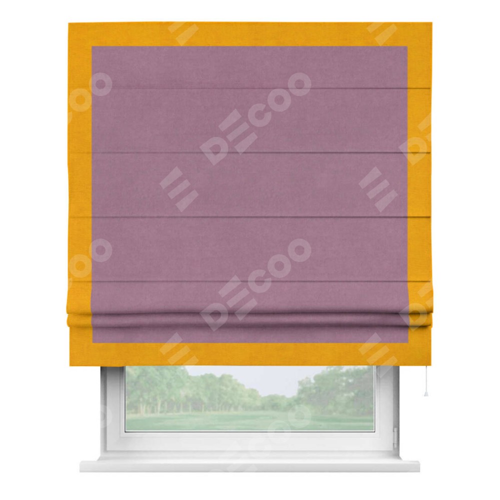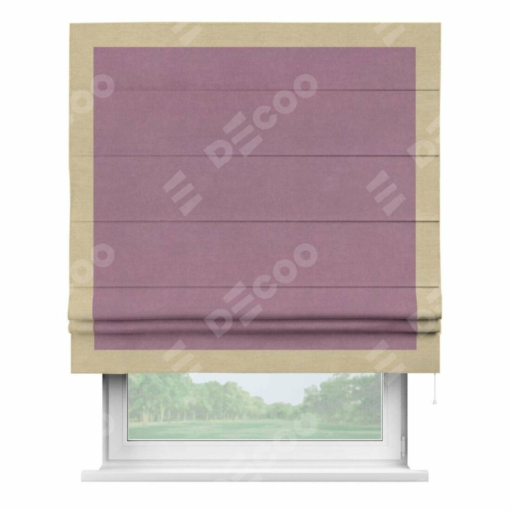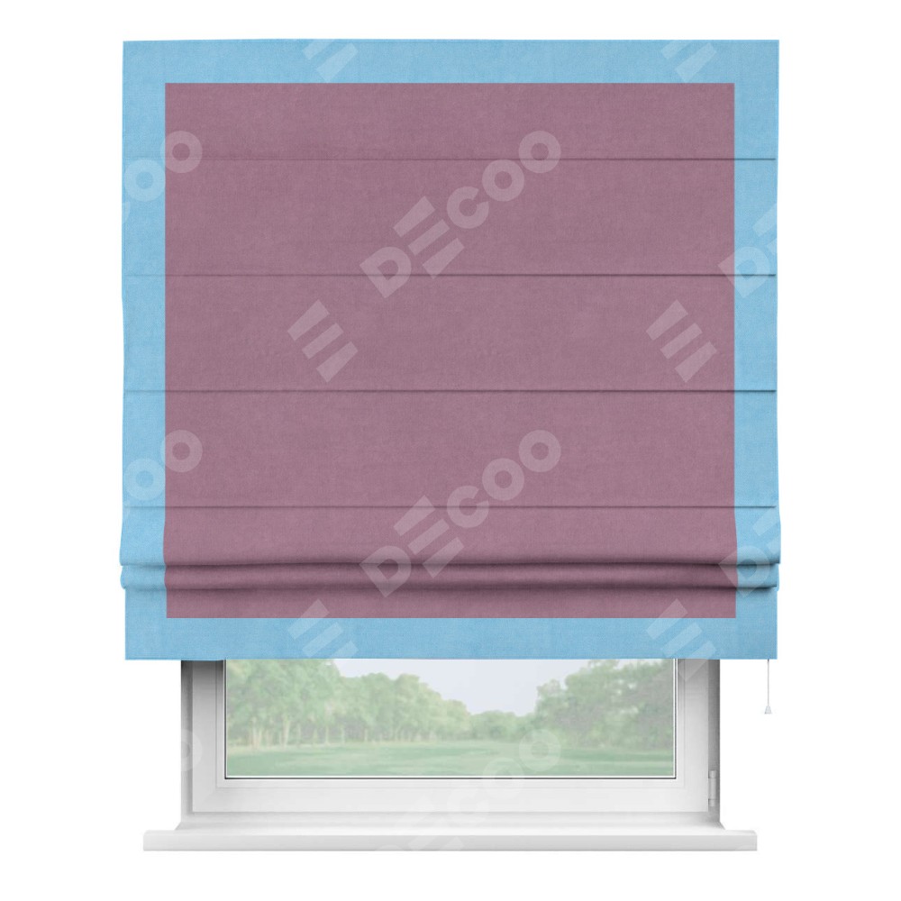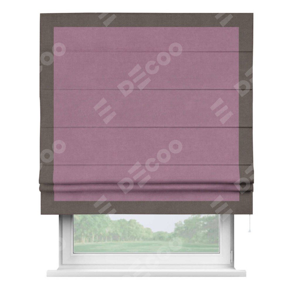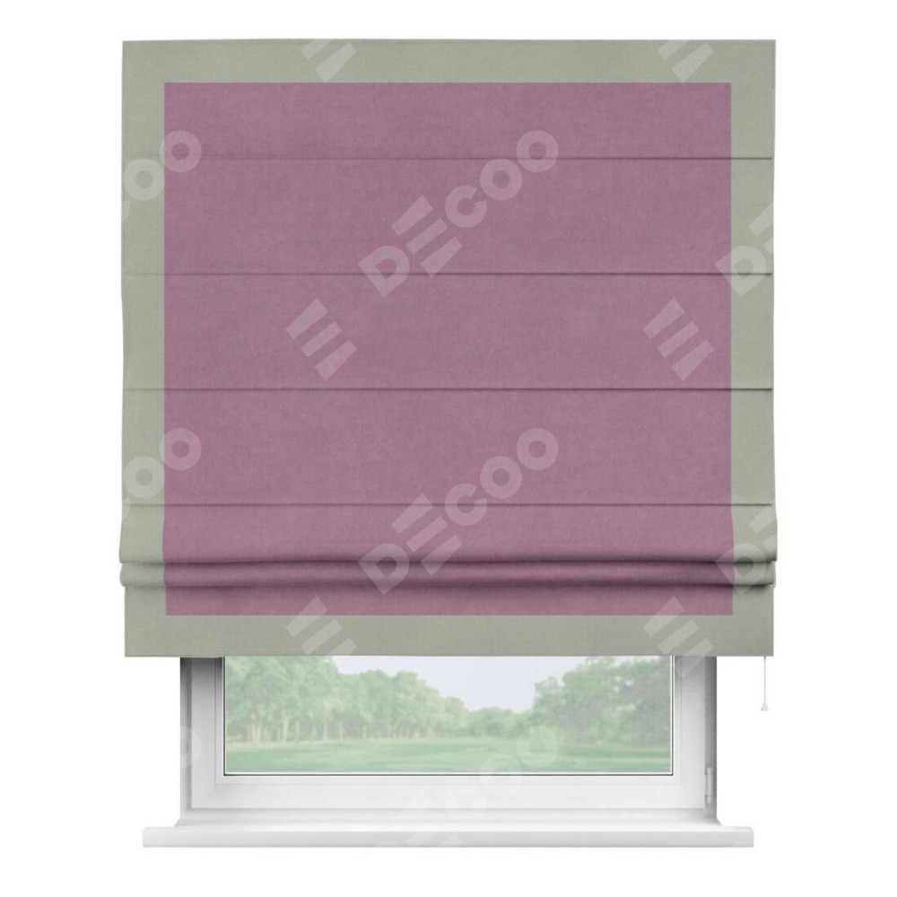 Римская штора «Кортин» с кантом Чесс, для проема, ткань вельвет лиловый